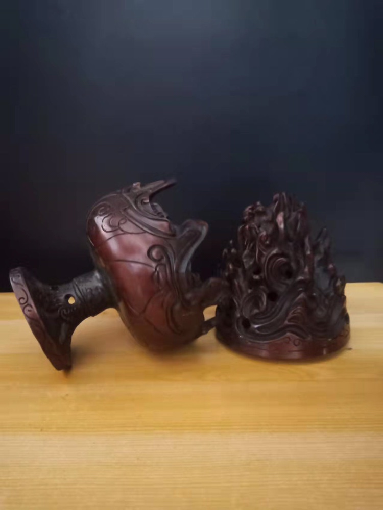 博山熏炉香薰炉纯铜铸造客厅怀旧复古家具摆件棕色桌面摆放茶道