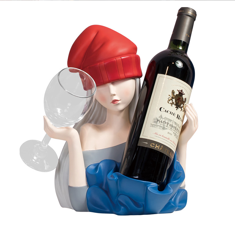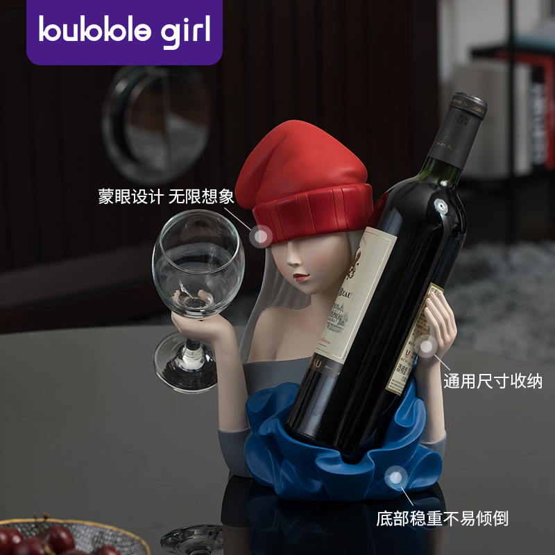 嘻哈女孩红酒架摆件轻奢高档客厅C吧台酒柜酒杯酒瓶架时尚装饰品