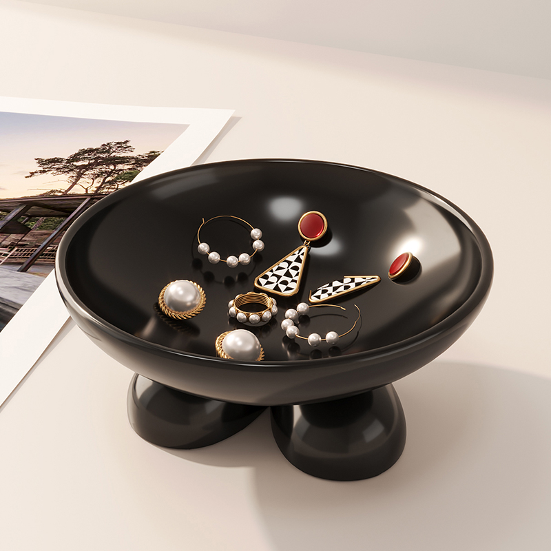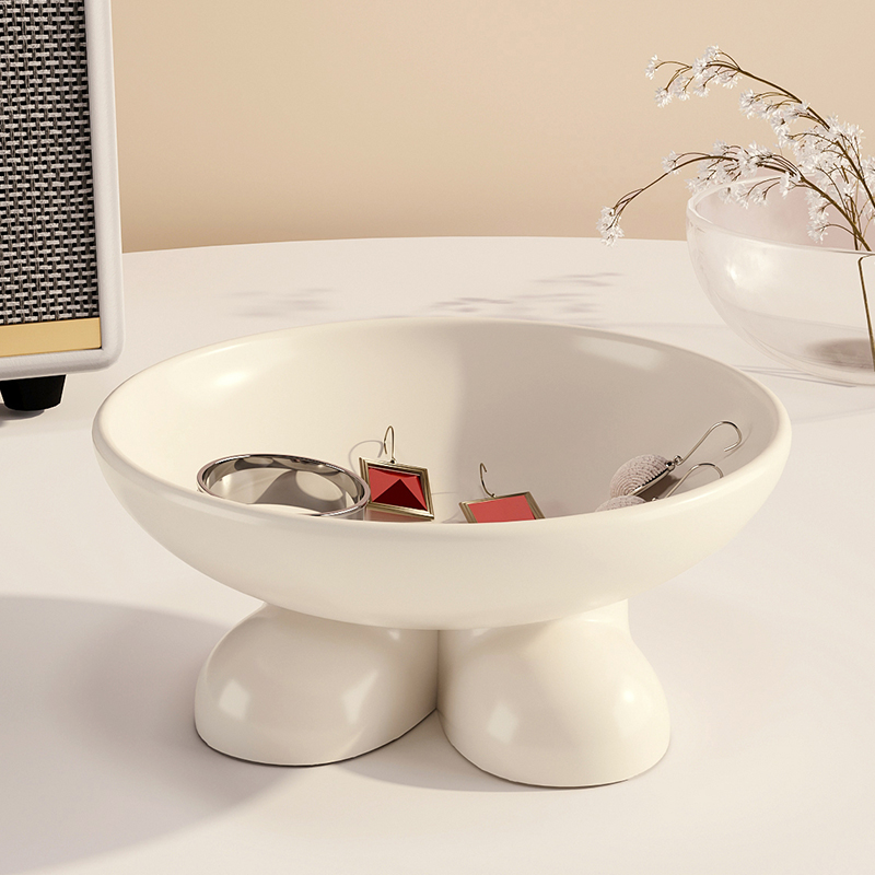 现代简约入户玄关钥匙收纳摆件陶瓷高级感奶油风创意门口首饰托盘