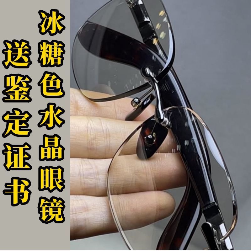 2024新款纯天然水晶石眼镜墨镜司机太阳镜清凉护目镜中老年太阳镜