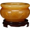 天然阿富汗玉石黄玉聚宝盆聚福摆件花架玄关博古架摆件乔迁礼品