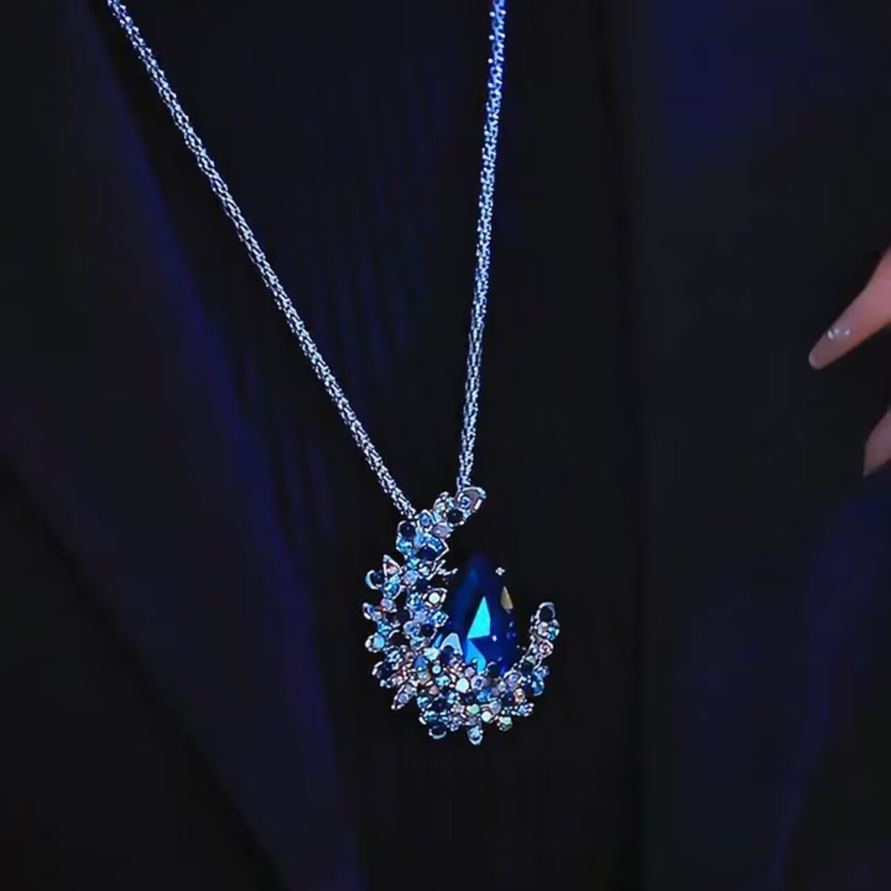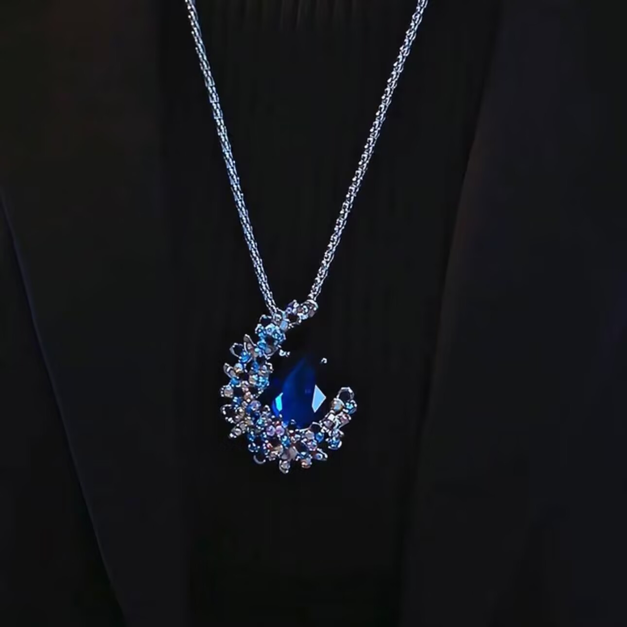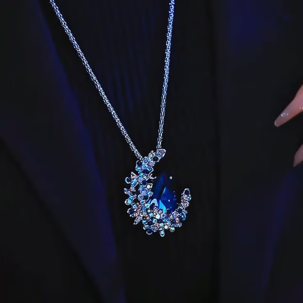 秋冬款蓝色月光皎洁毛衣链女长款高级感轻奢2024新款爆款配饰女潮