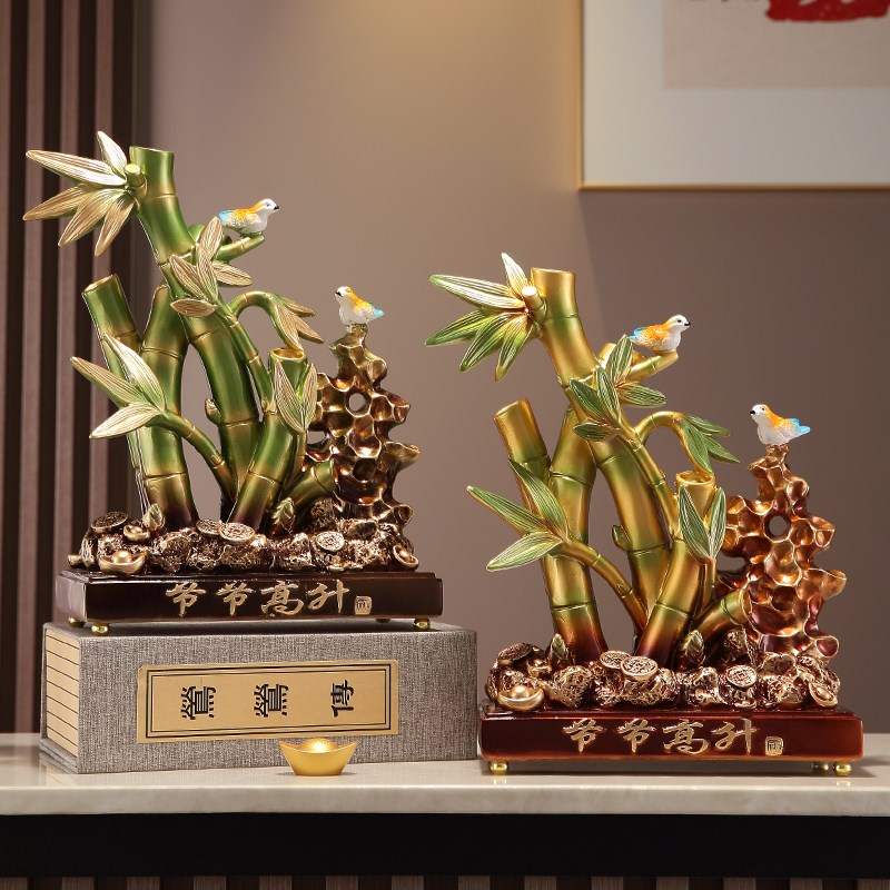 新中式招财竹子摆件客厅电视柜酒柜装饰品办公室桌面X玄关开业礼