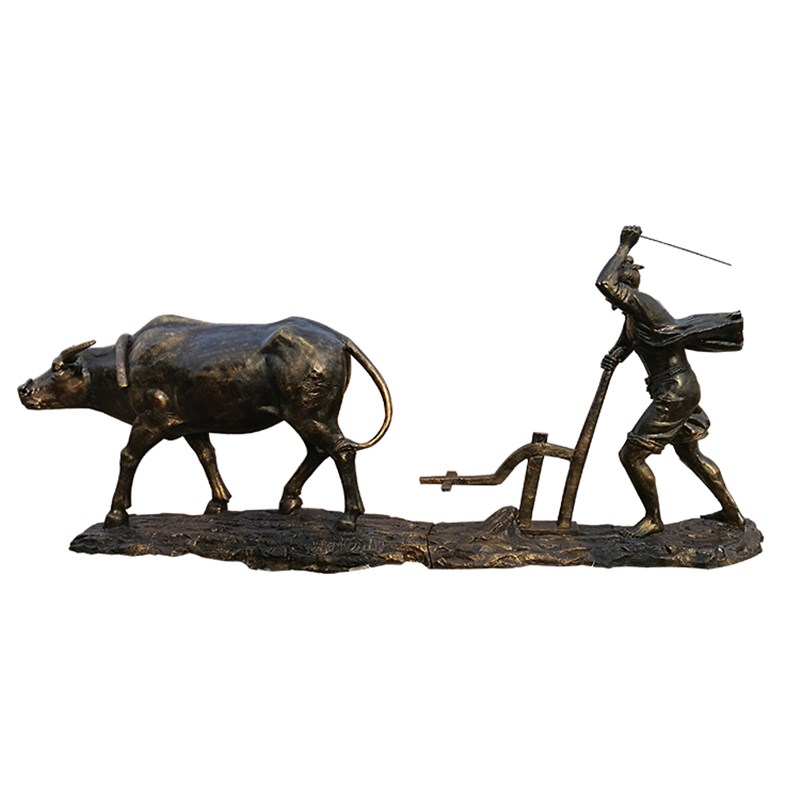 玻璃钢农耕人物雕塑文化牛拉犁民俗浮雕园林仿铜人物铸铜摆件定制