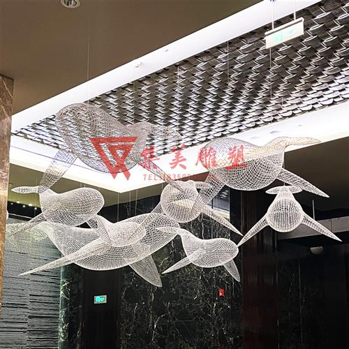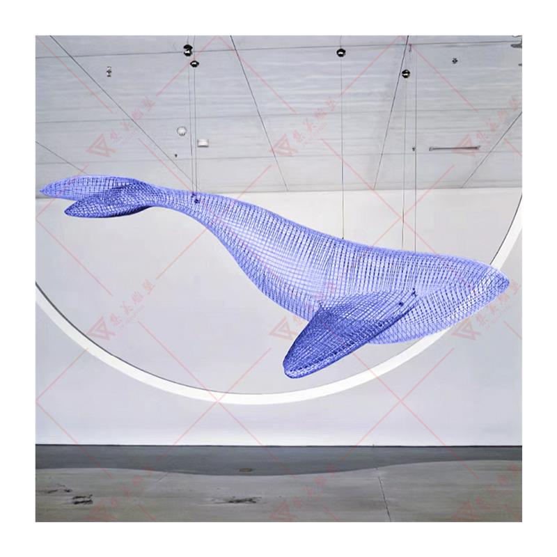 不锈钢铁艺编织镂空鲲鹏鲸鱼海豚雕塑售楼处餐馆空中海洋吊饰定制