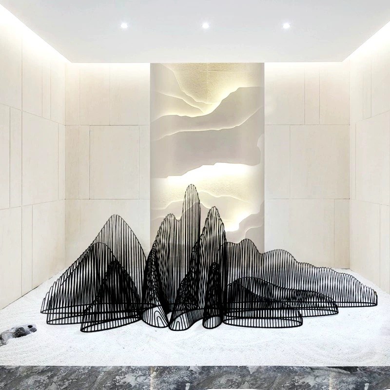 大型不锈钢假f山雕塑定制金属切片钢管镂空山型广场酒店楼盘装饰