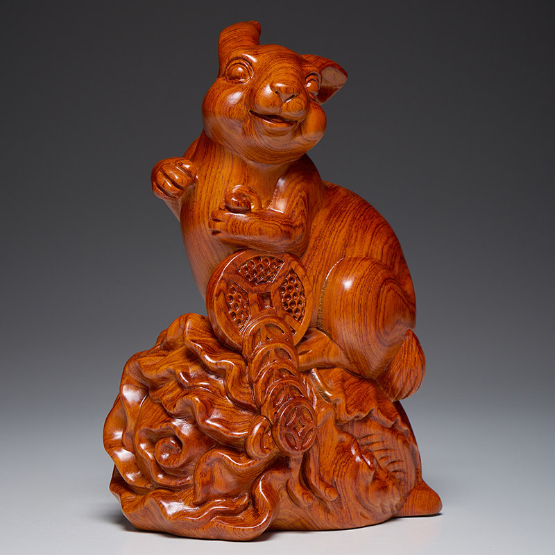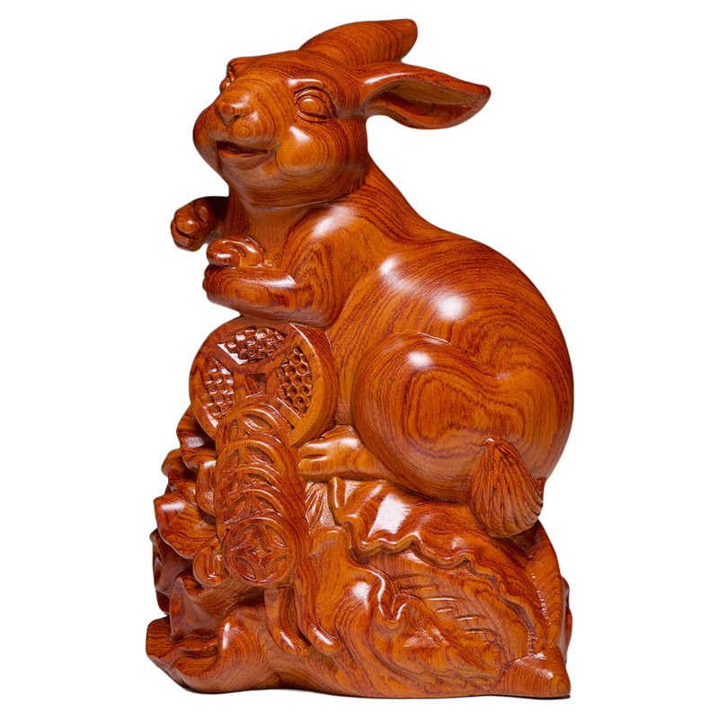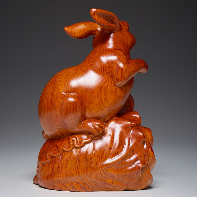 花梨木雕兔子摆件木兔生肖实木头兔工艺品家居客厅装饰品开业送礼