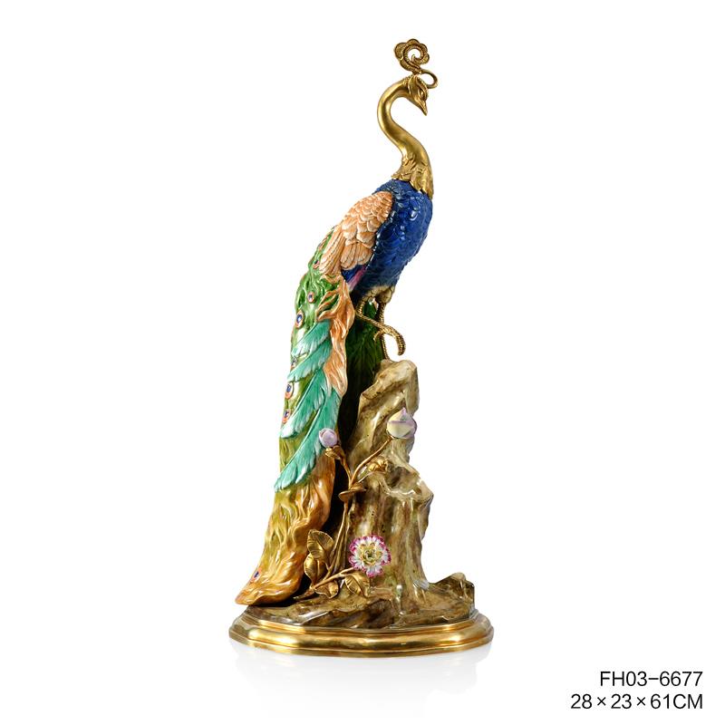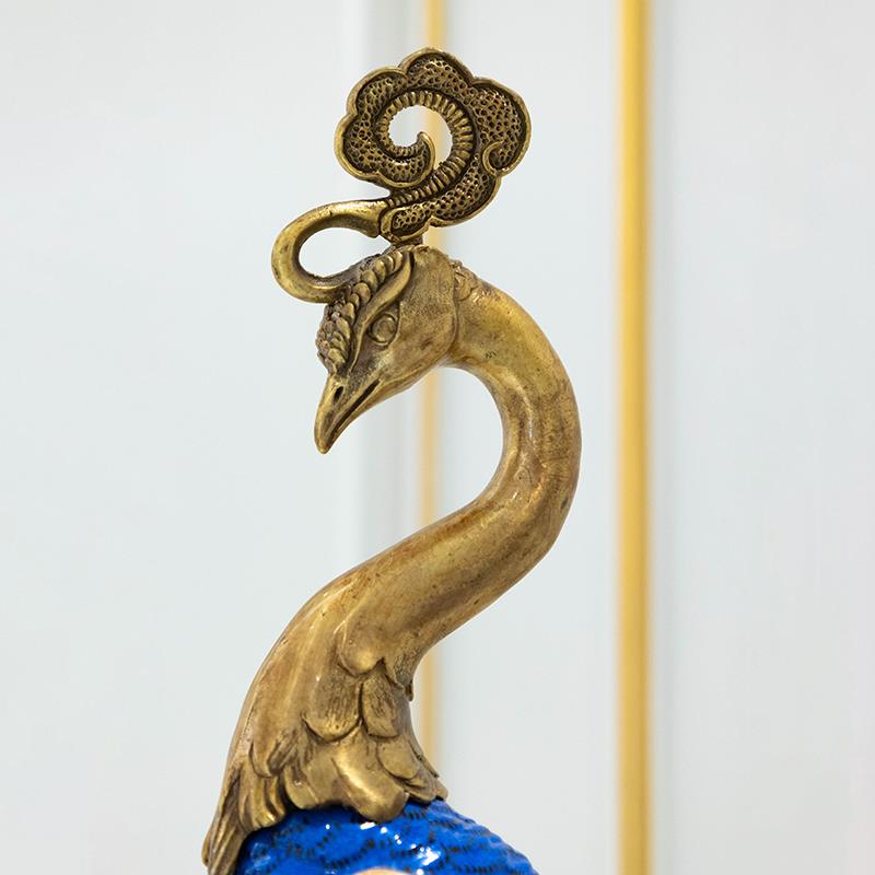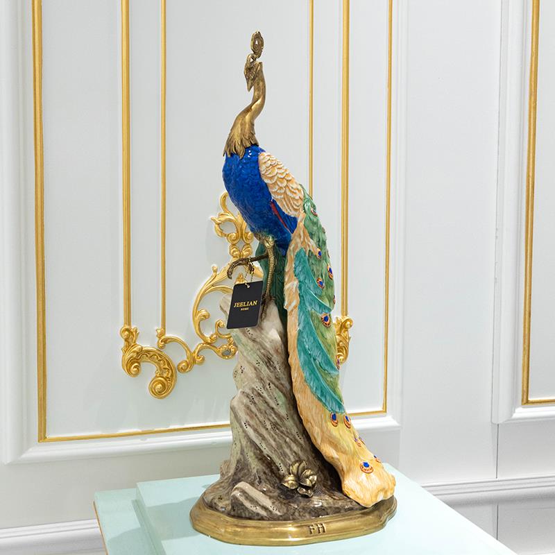 茱莉安法式奢华手工陶瓷镶铜蓝色孔雀别墅客厅门厅桌面装饰摆件