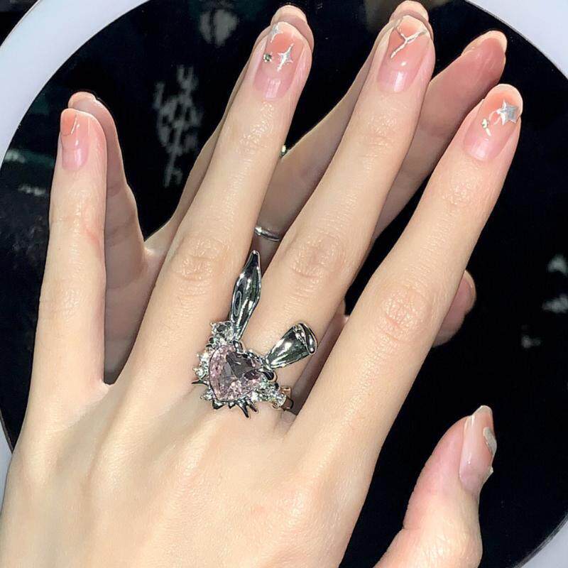 食指戒兔子个性开口戒指女气质网红卡通可爱甜酷风