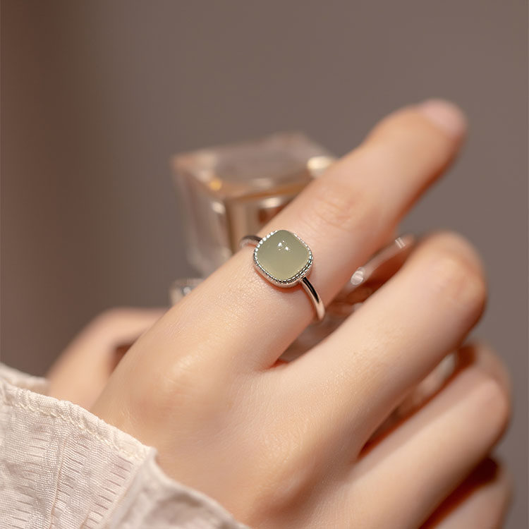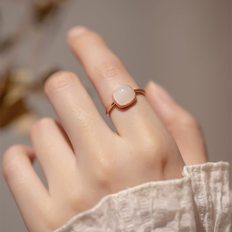 和田玉小方糖戒指2023年新款潮轻奢小众设计百搭开口指环气质女