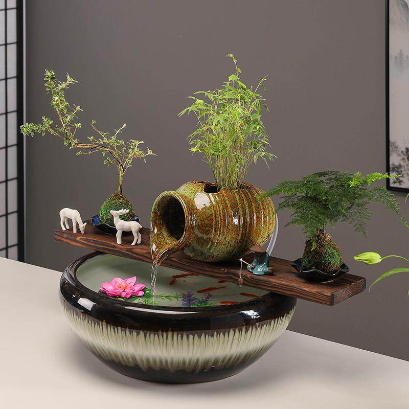 循环流水陶罐古法养鱼庭院鱼缸造景摆件阳台室外鱼池造景全套组合
