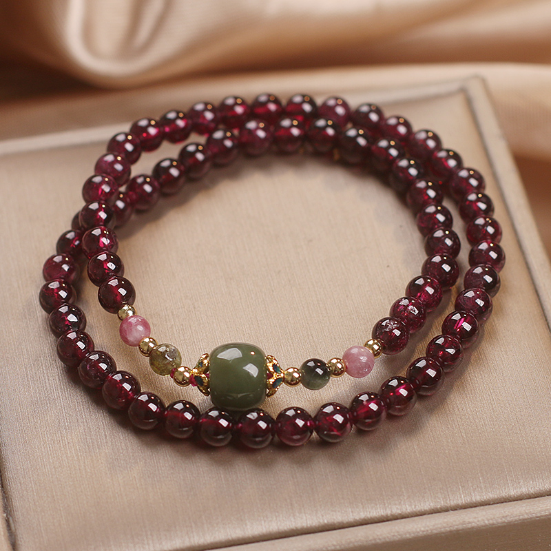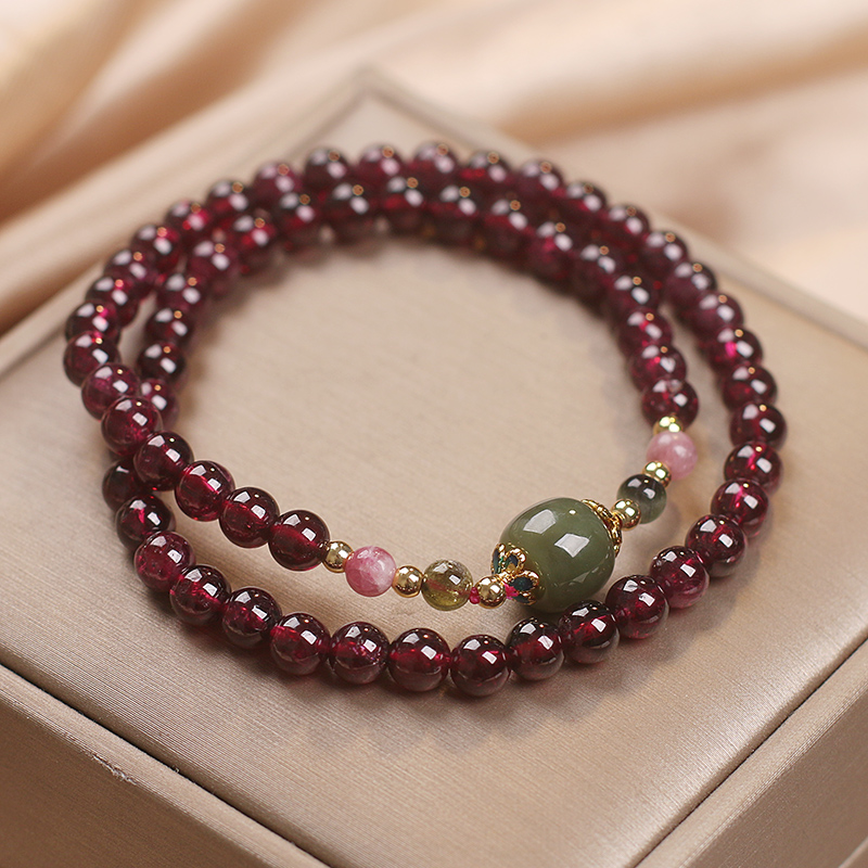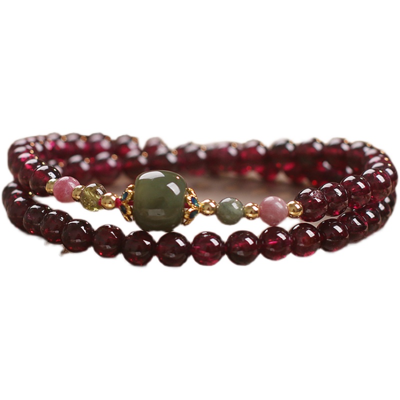 高品质天然石榴石串珠手链女民族风多层手环送女友闺蜜礼物手饰品