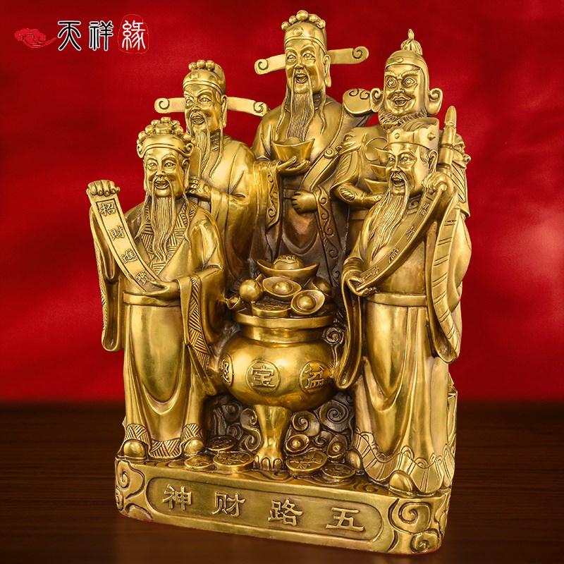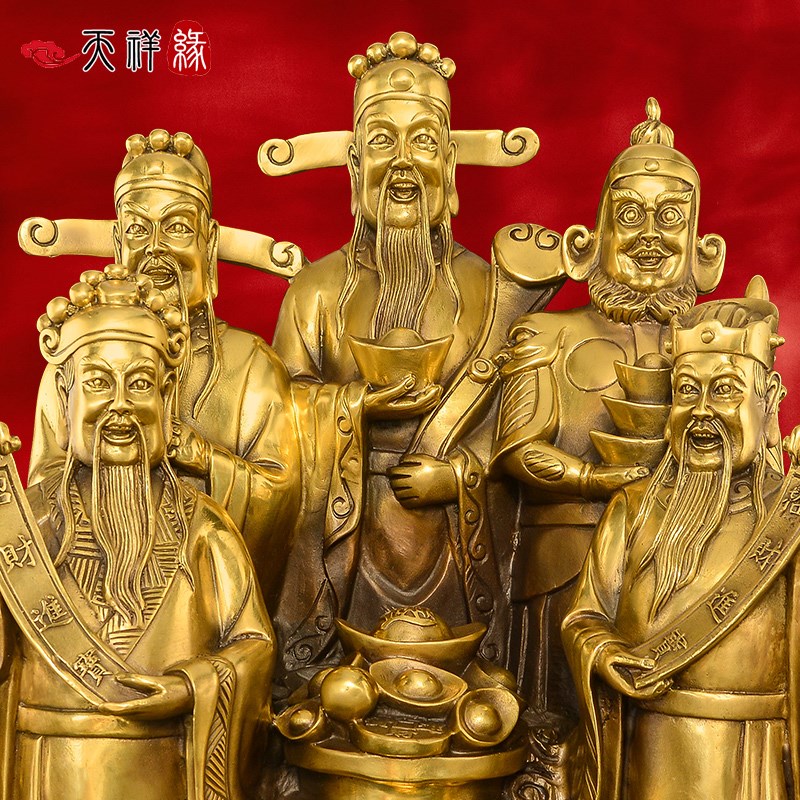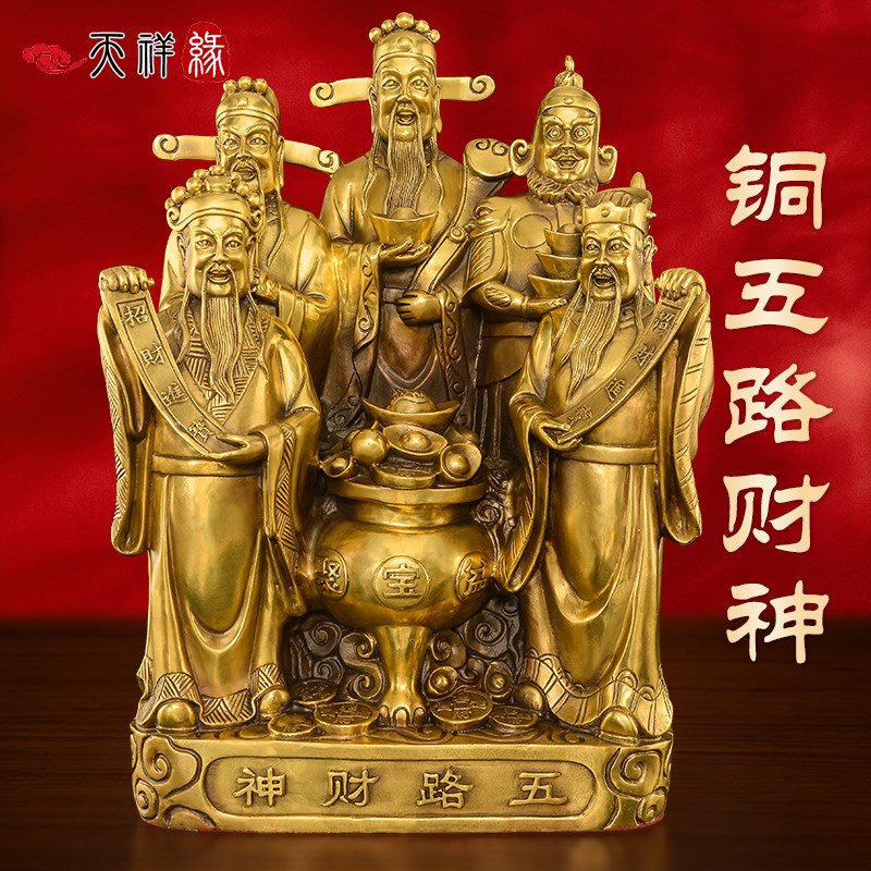 铜五路财神摆件财神爷招财供奉五路财神佛像客厅公司办公室大号