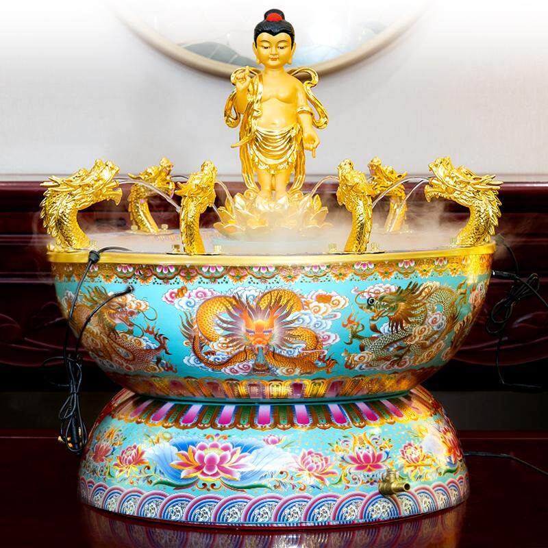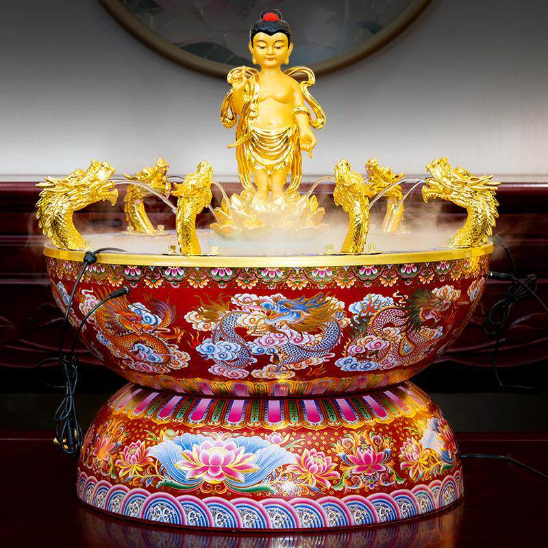 景泰蓝浴佛盆佛诞节释迦牟尼佛太子佛浴佛节寺庙用品九龙吐水摆件