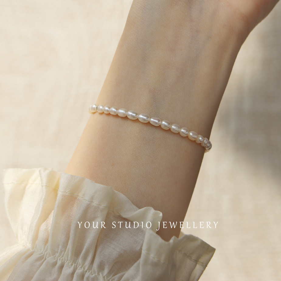 正品极细迷你天然淡水珍珠手链手串弹力绳叠戴礼物不掉皮女简约