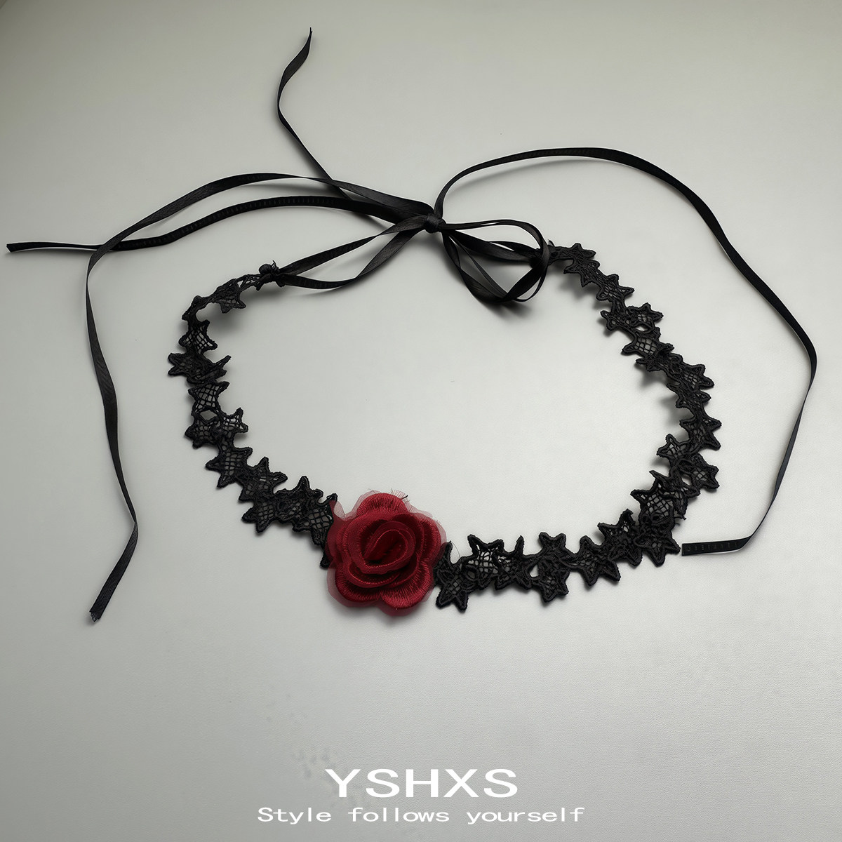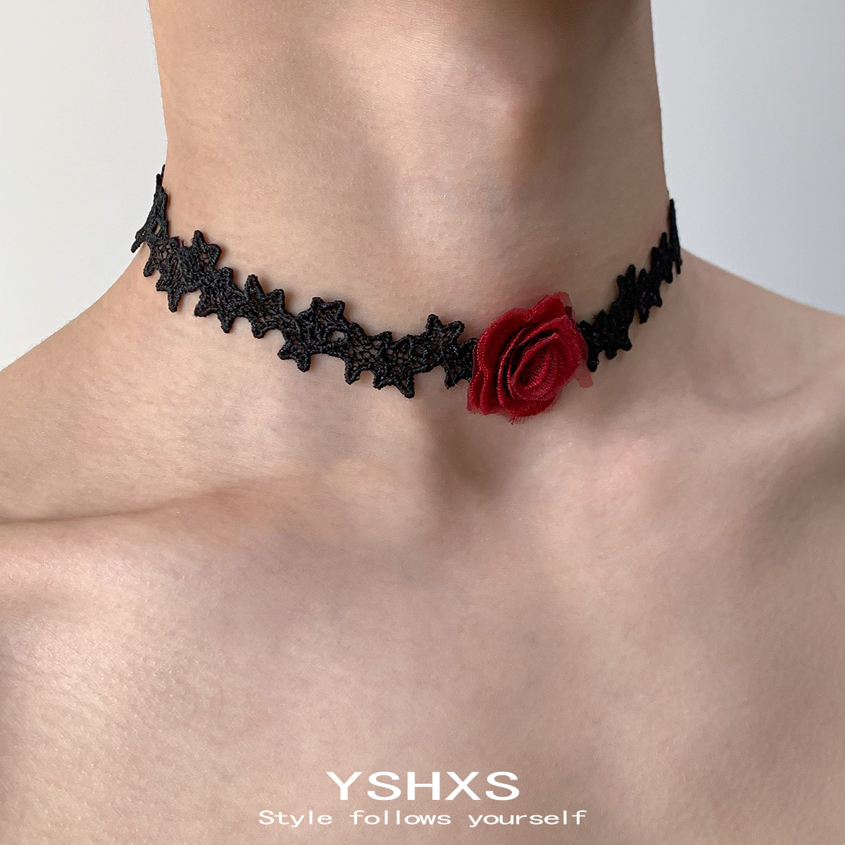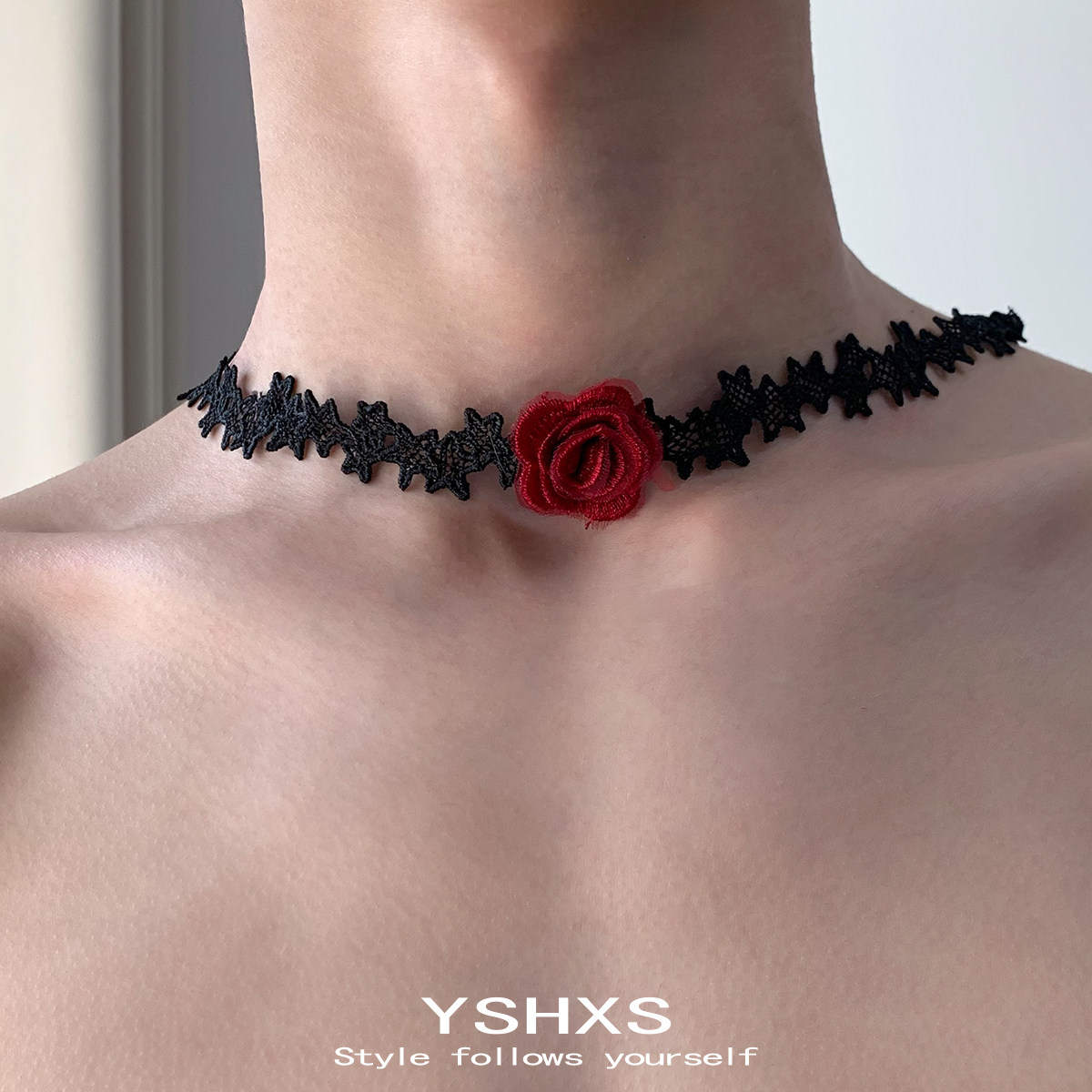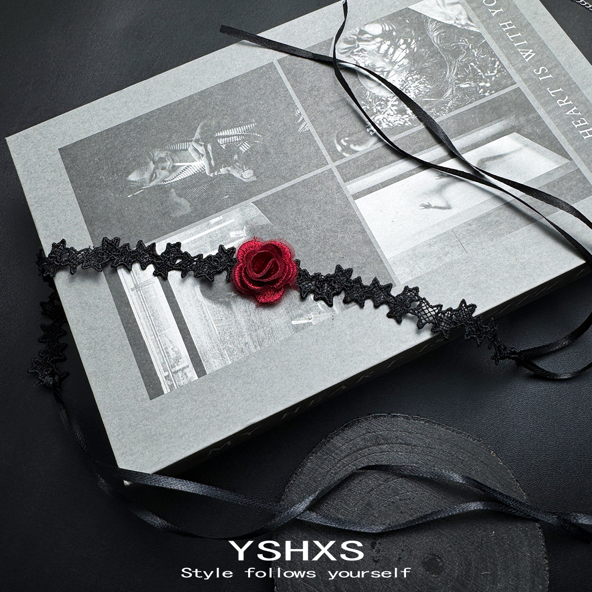黑色蕾丝红玫瑰绳系长款绑带编织choker脖子简约性感个性项圈女