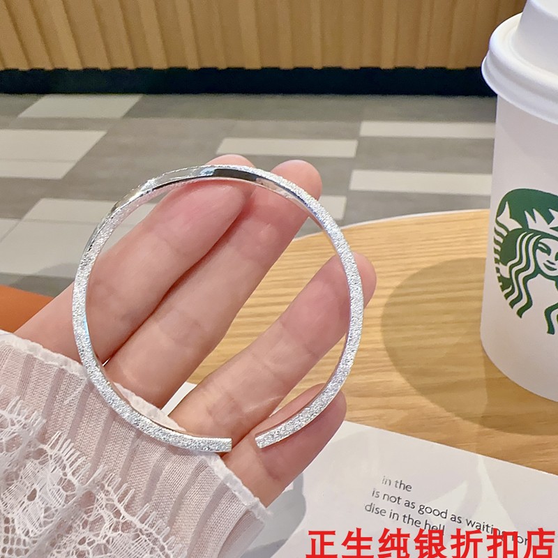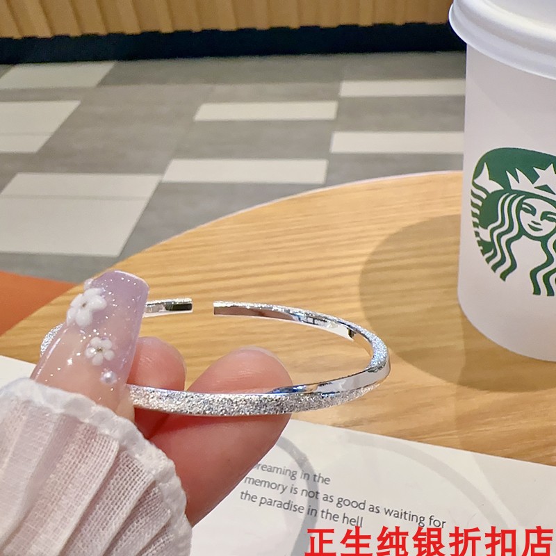 香港正生莫比乌斯细扭纹开口纯银手镯足银9999女简约百搭年轻款
