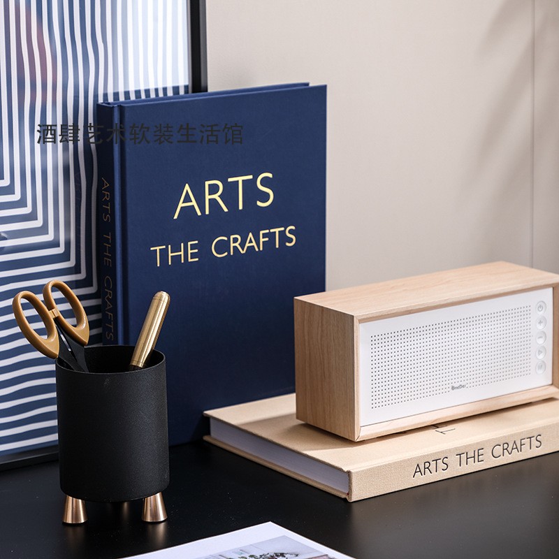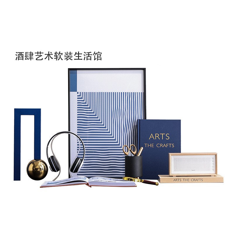 样板房书房桌面摆件软装饰品蓝色系音乐主题影响耳机装饰书籍组合