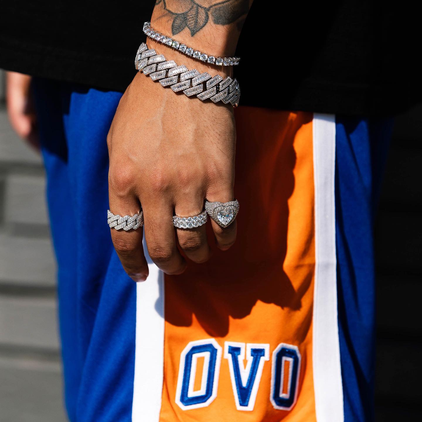 ICE BLING 诺米同款20MM菱形混镶锆石古巴手链 说唱嘻哈HIPHOP潮