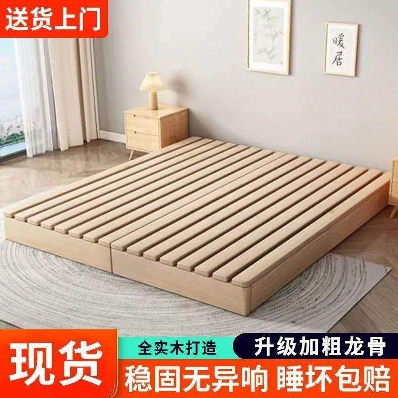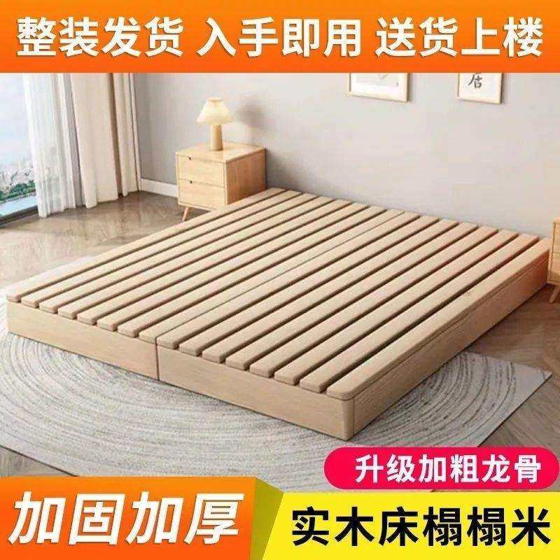 实木日式榻榻米床落地式出租房折叠床架现代双人排骨架卧室木板床