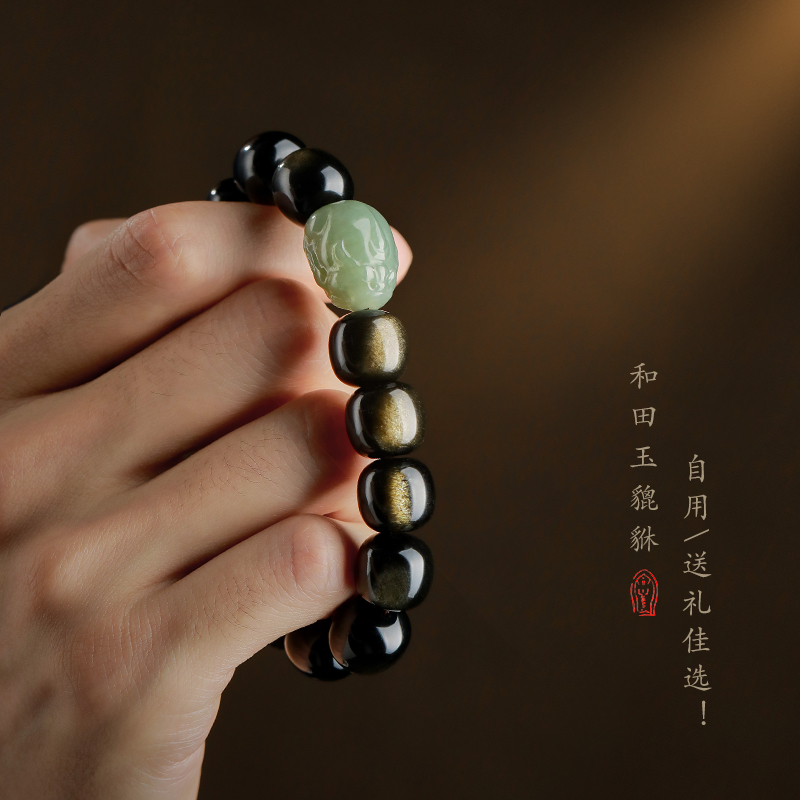 貔貅手链男女和田玉金曜石手串佛珠皮丘转运珠送男友玉石饰品礼物