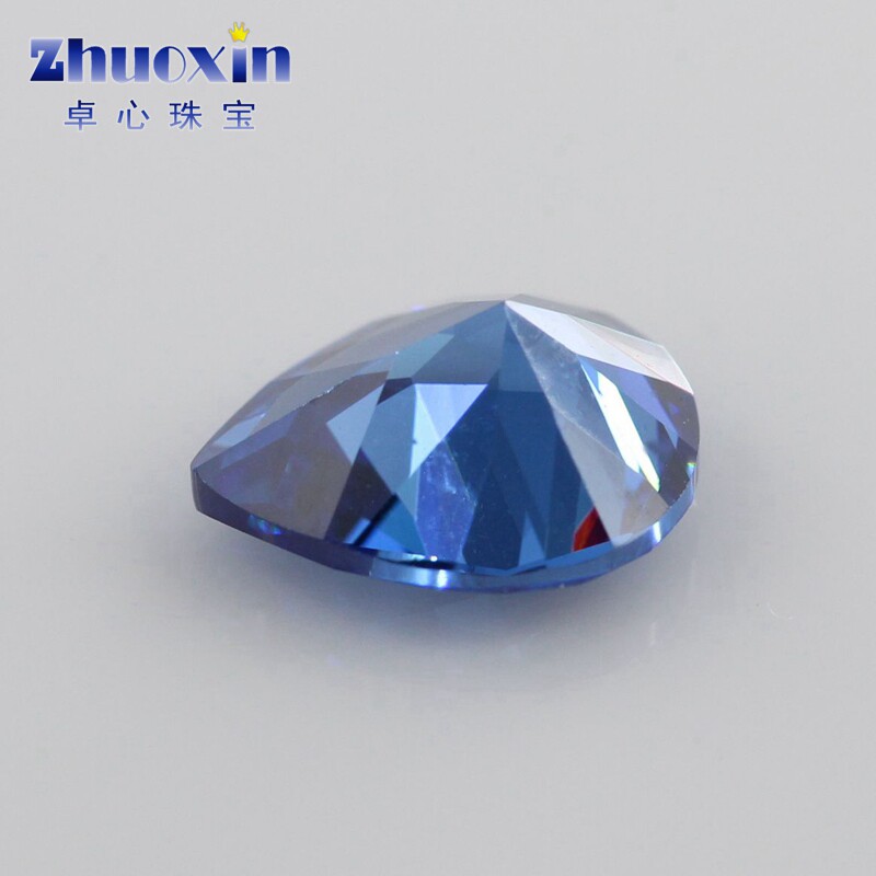 梨形宝蓝色锆石5A仿蓝宝石裸石 兰锆CZ水滴形原石戒面镶嵌钻diy