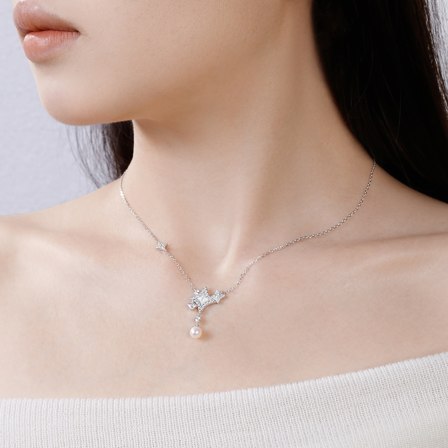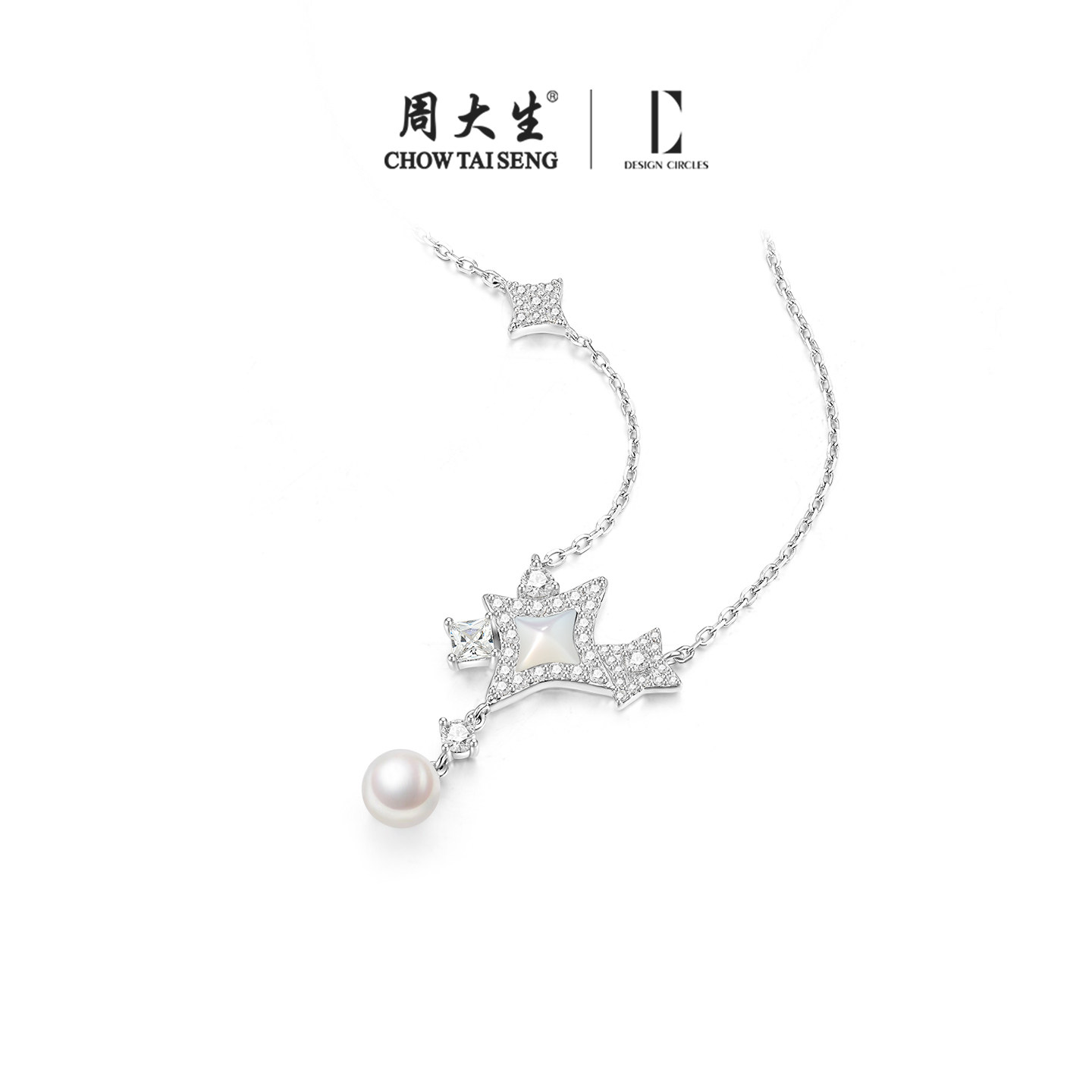 周大生S925纯银DC珍珠星光项链女轻奢高级感锁骨链生日礼物送女友