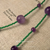 绿色猫眼石石紫水晶间珠长款项链女士毛衣链多戴法双层84+5cm