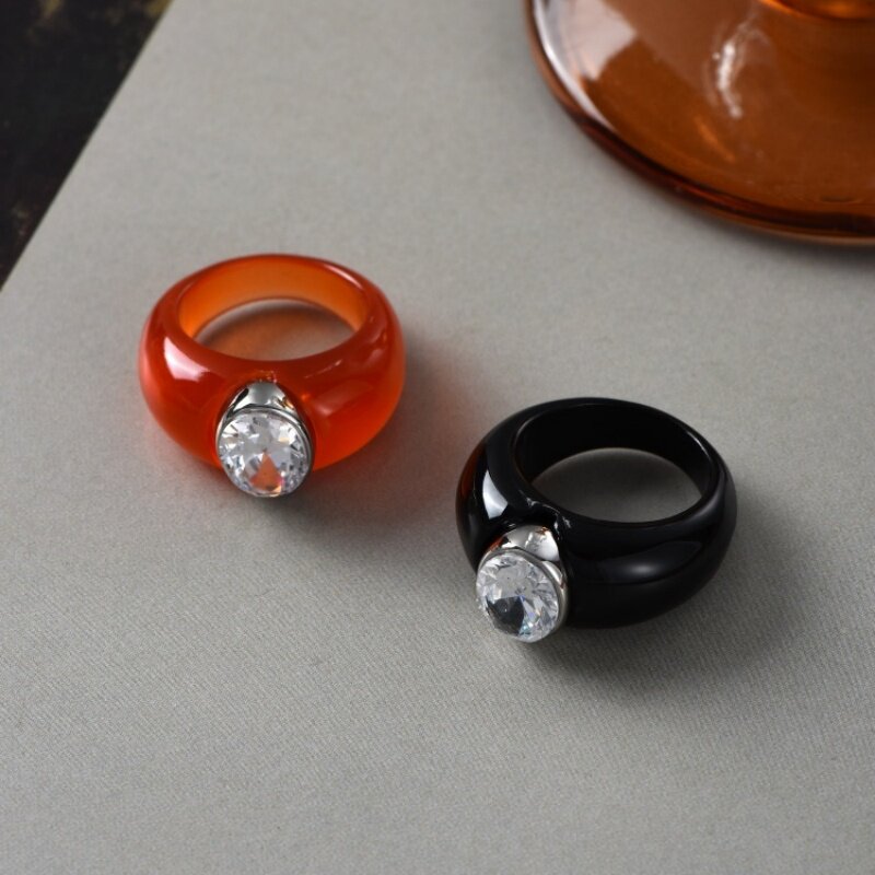 极简镶钻黑色树脂戒指女新中式轻奢小众设计高级感红色锆石指环