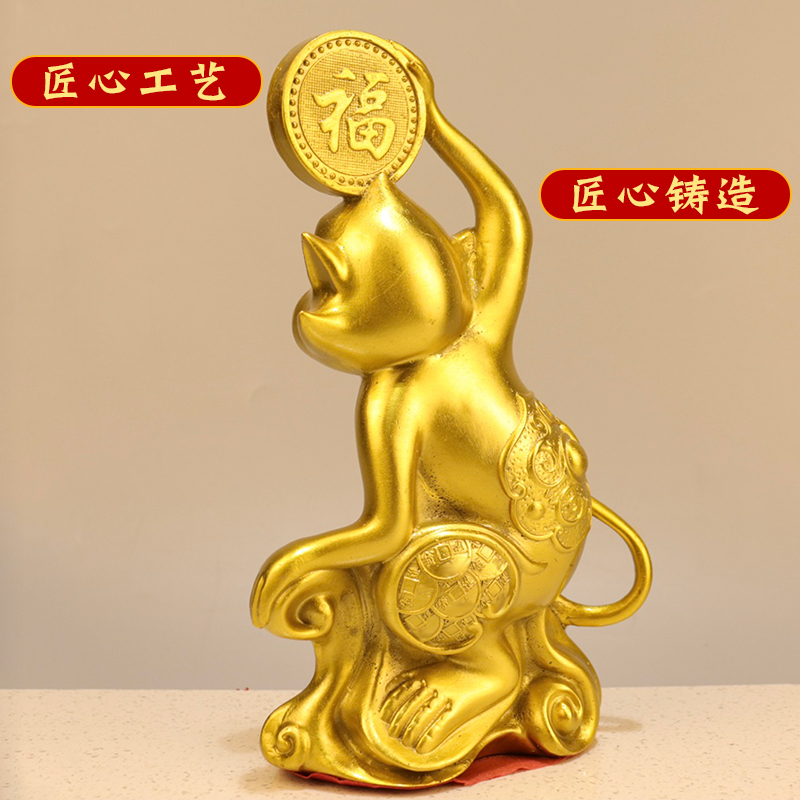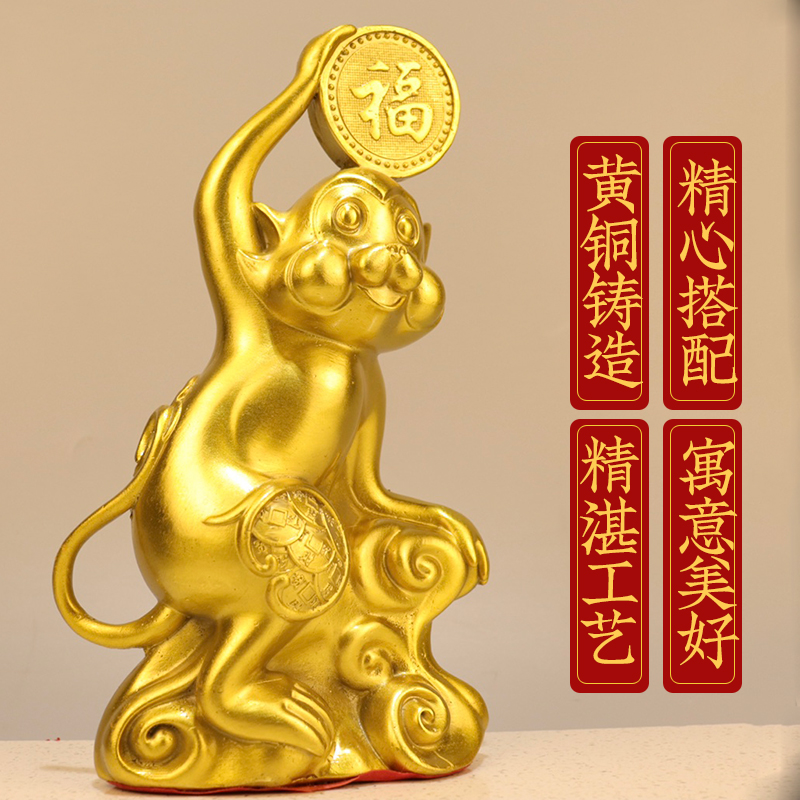 黄铜金猴送福摆件铜十二生肖猴补角猴吉祥物家居客厅办公室装饰品