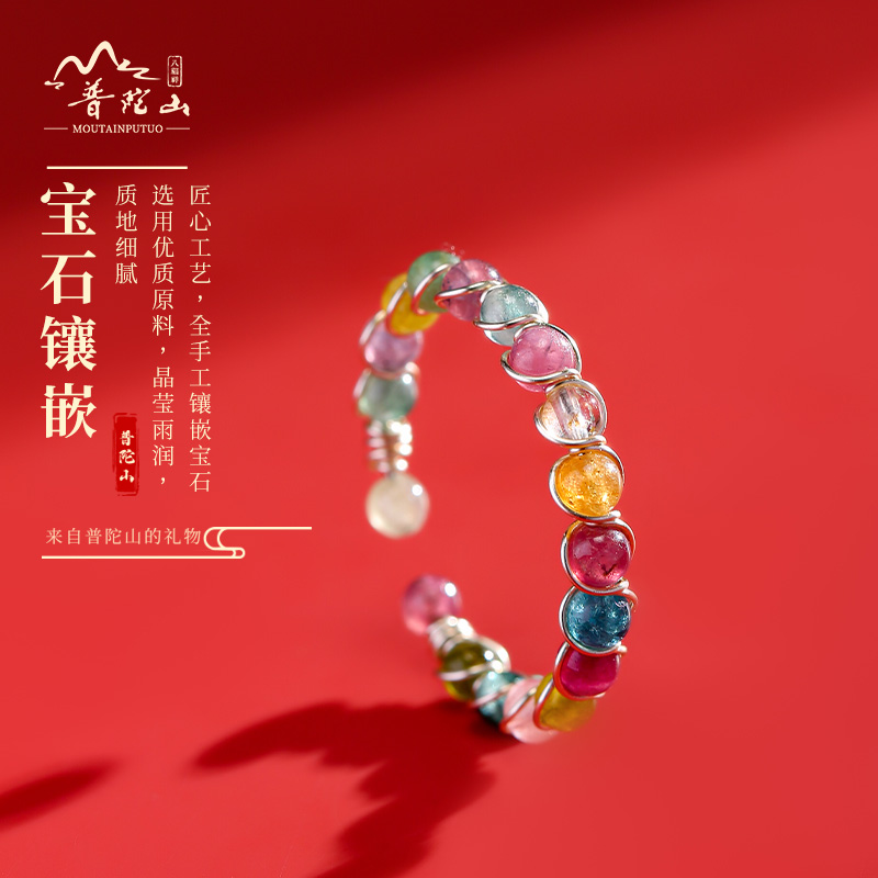 极速普陀山紫水j晶石榴石小众指戒女碧玺食指中指戒指简约设计开