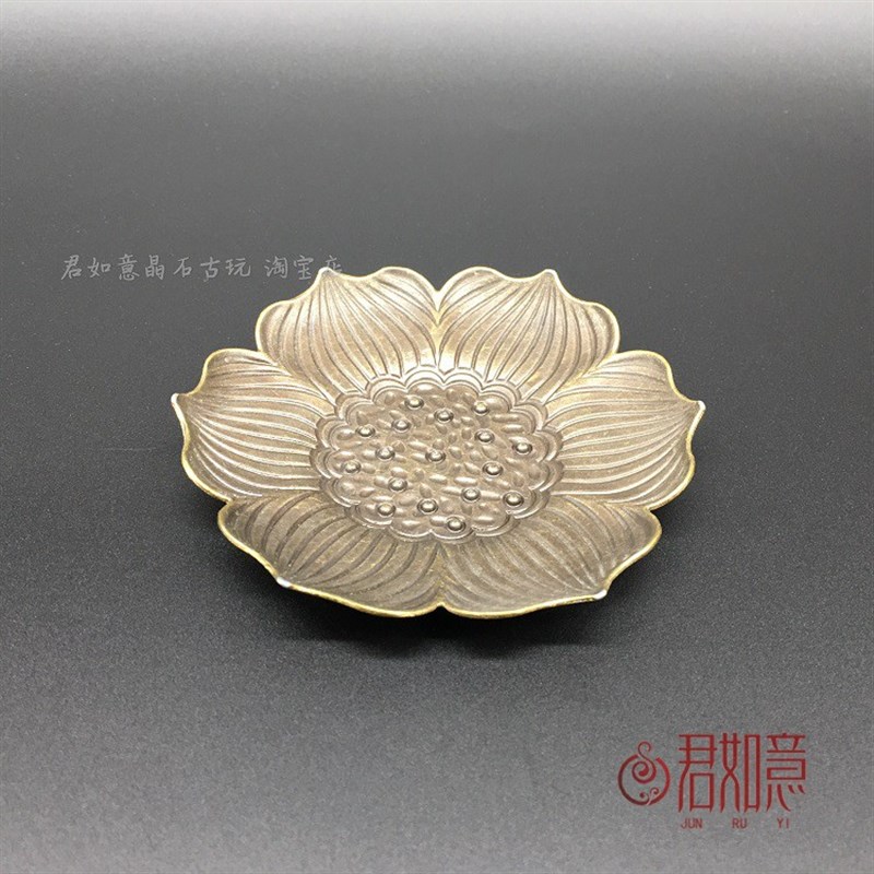 仿古做旧铜合金莲k花盘子莲花小香炉托盘底盘迷你小碟子禅意摆件