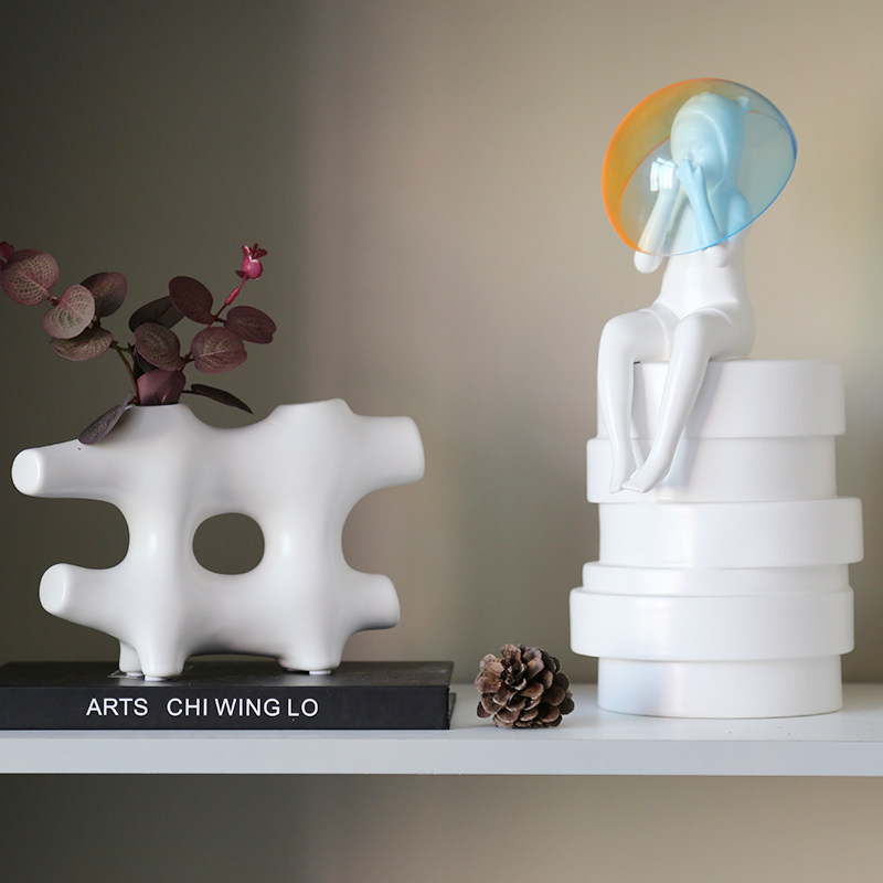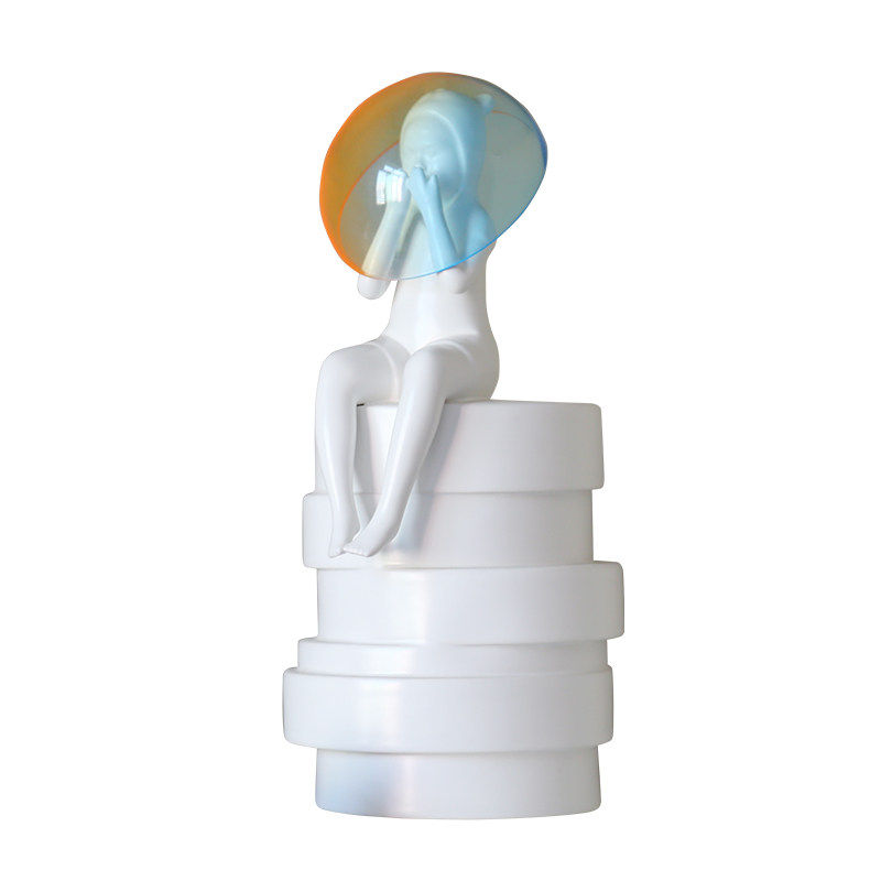 夕阳渐变色泡泡小孩白色创意陶瓷人物摆件电视柜书架艺术软装饰品