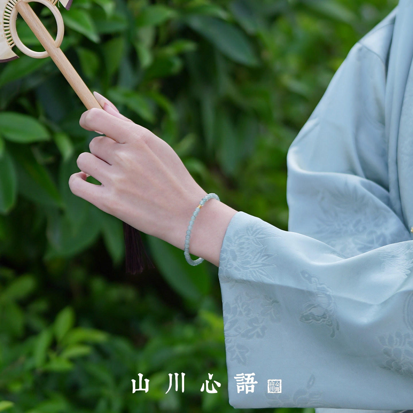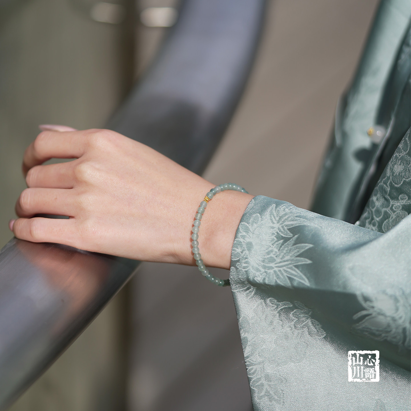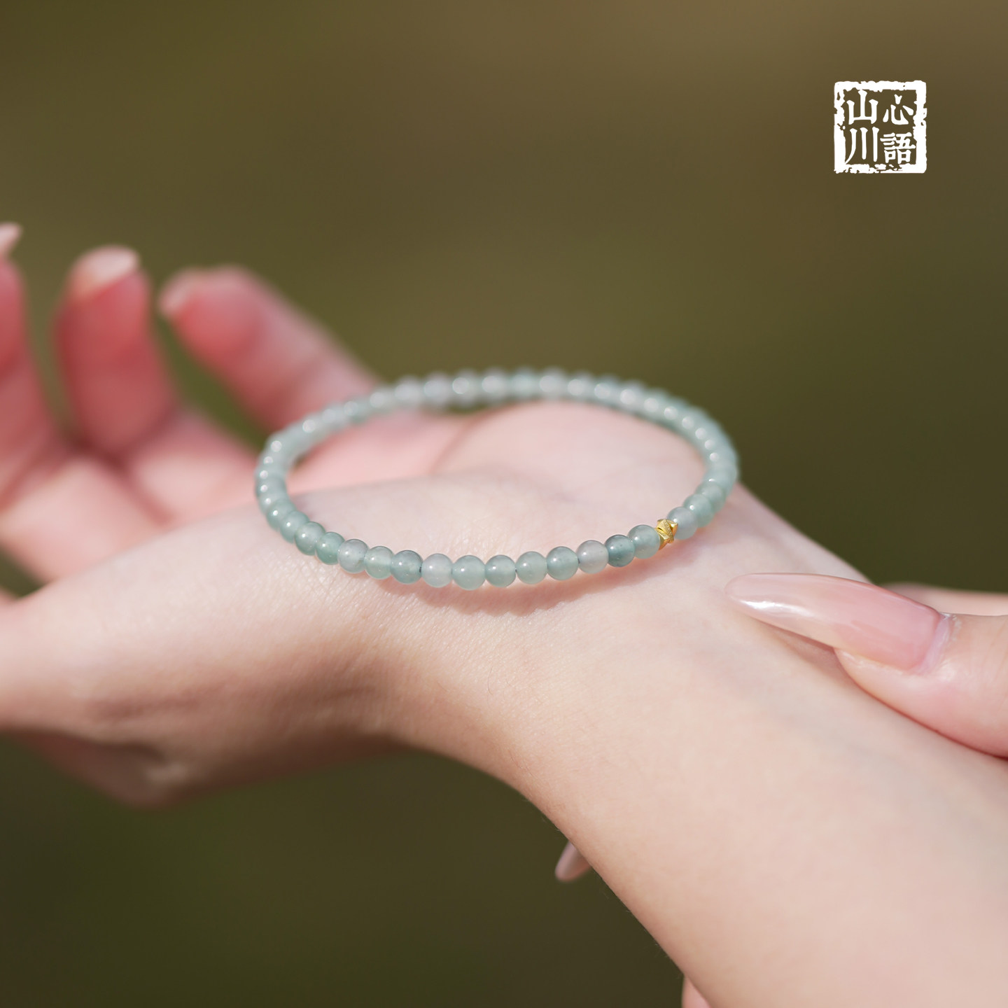 天然翡翠手串18k金镶嵌玉石女款手链高端小众蓝水冰种蓝色小米珠