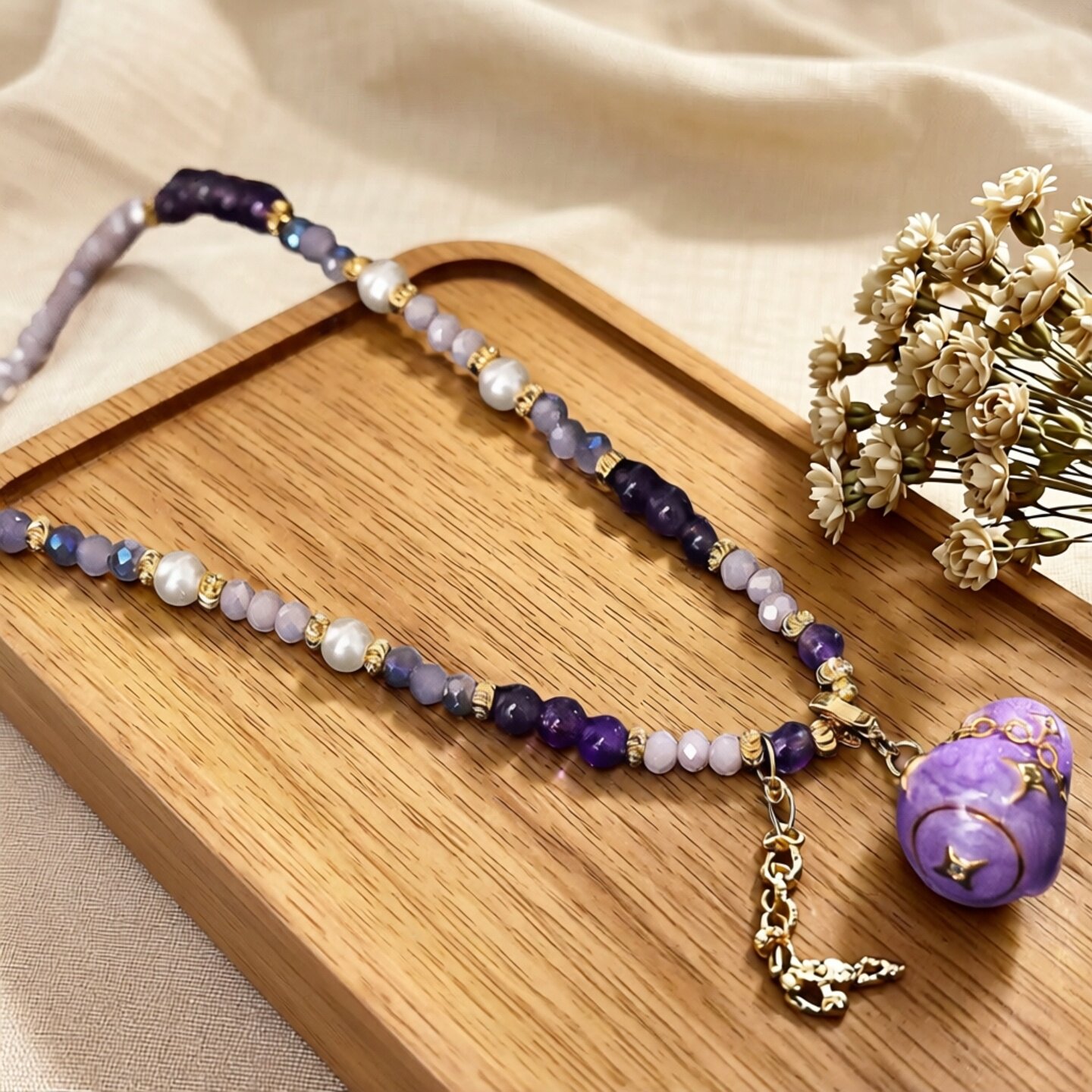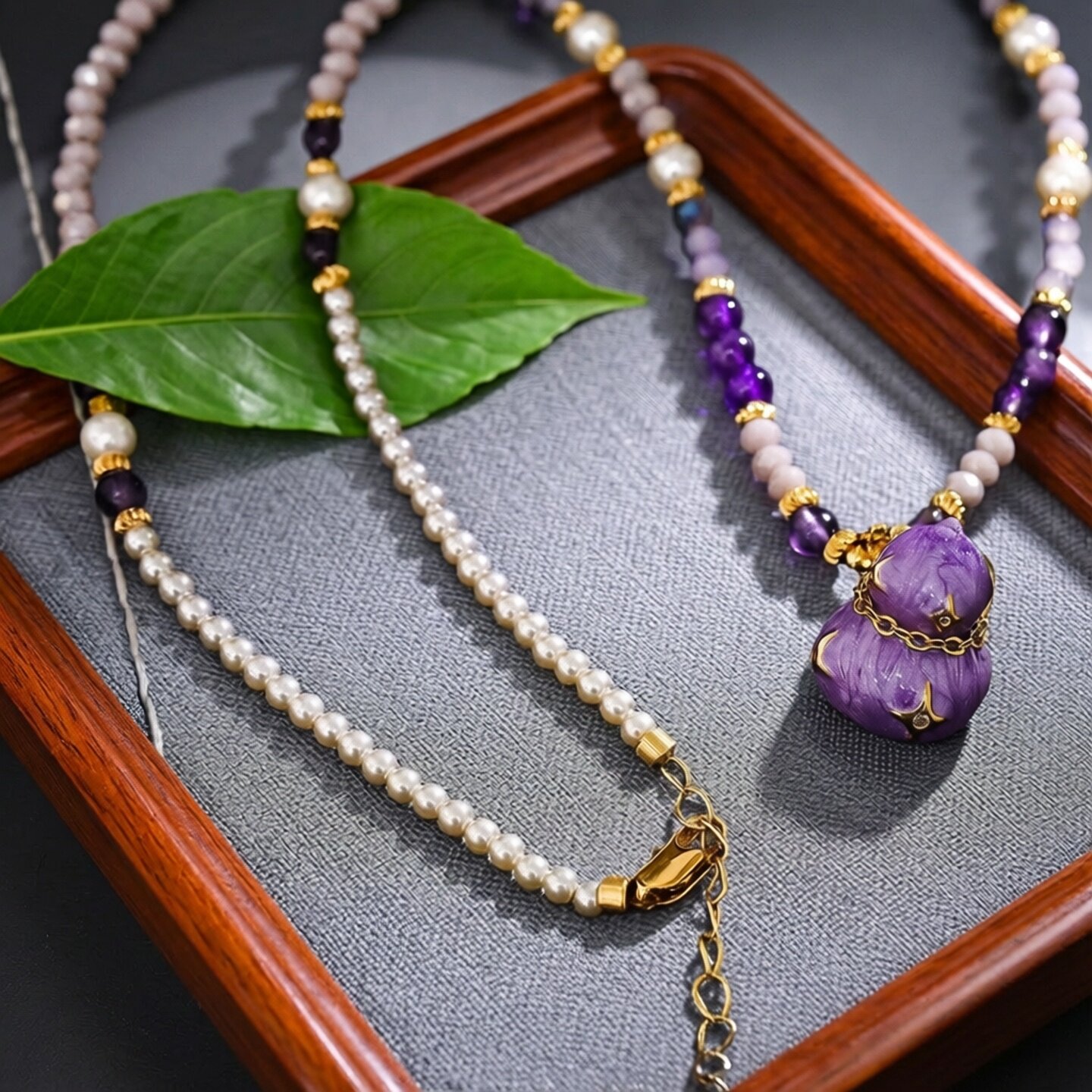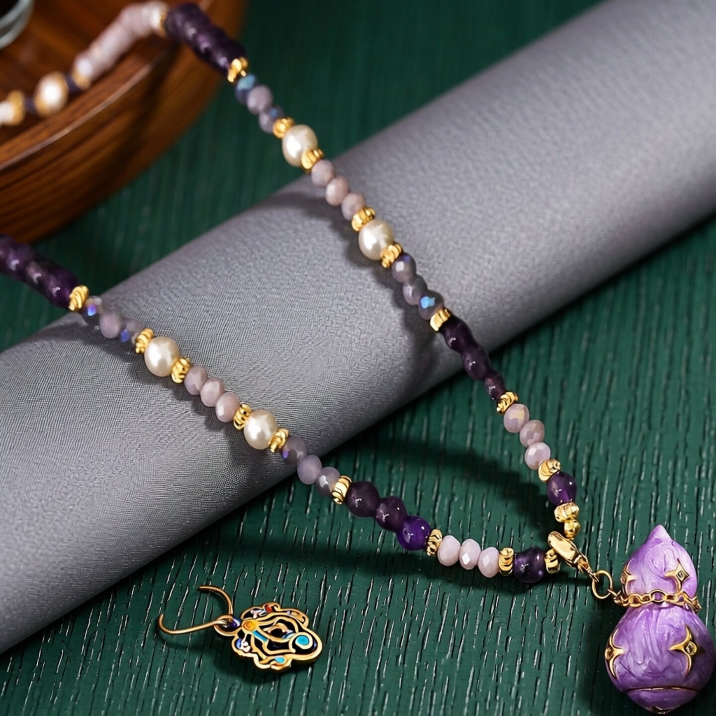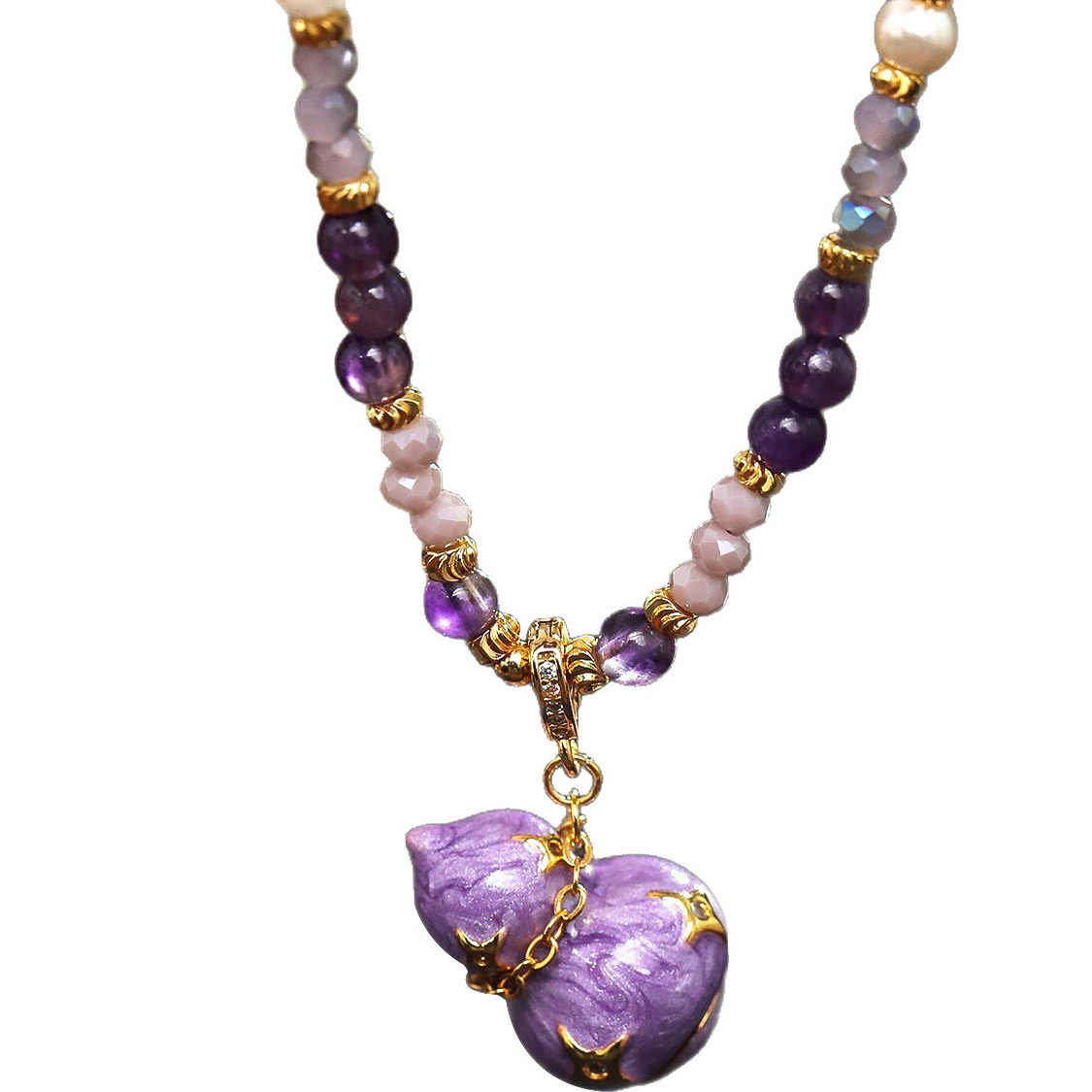 2026款新中式珐琅紫葫芦吊坠串珠项链配饰女长款珍珠高级感毛衣链