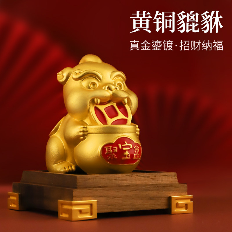 黄铜招财貔貅摆件旺财铜聚宝盆貔貅家居客厅办公桌面摆设开业礼品