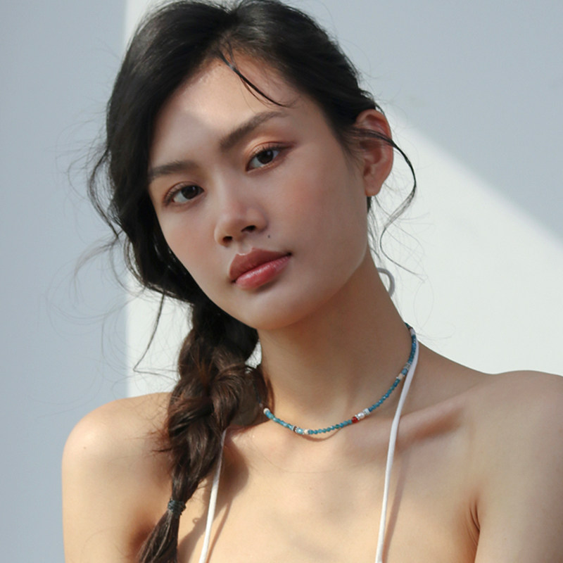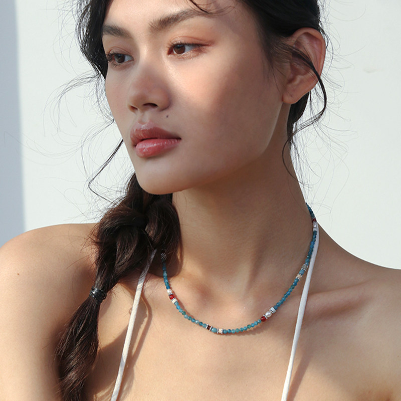 Moment 蓝色天然石串珠项链锁骨链毛衣链颈链饰品轻奢小众新款女
