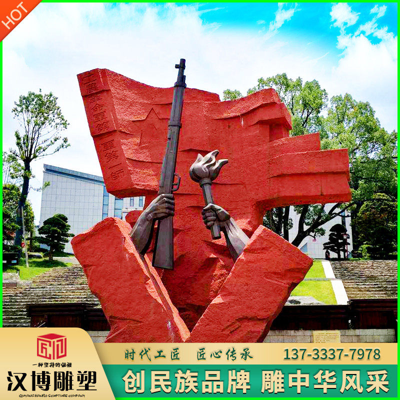 革命雕塑厂家定制纪念展馆红色文化雕像大型石雕红旗火炬爱国摆件