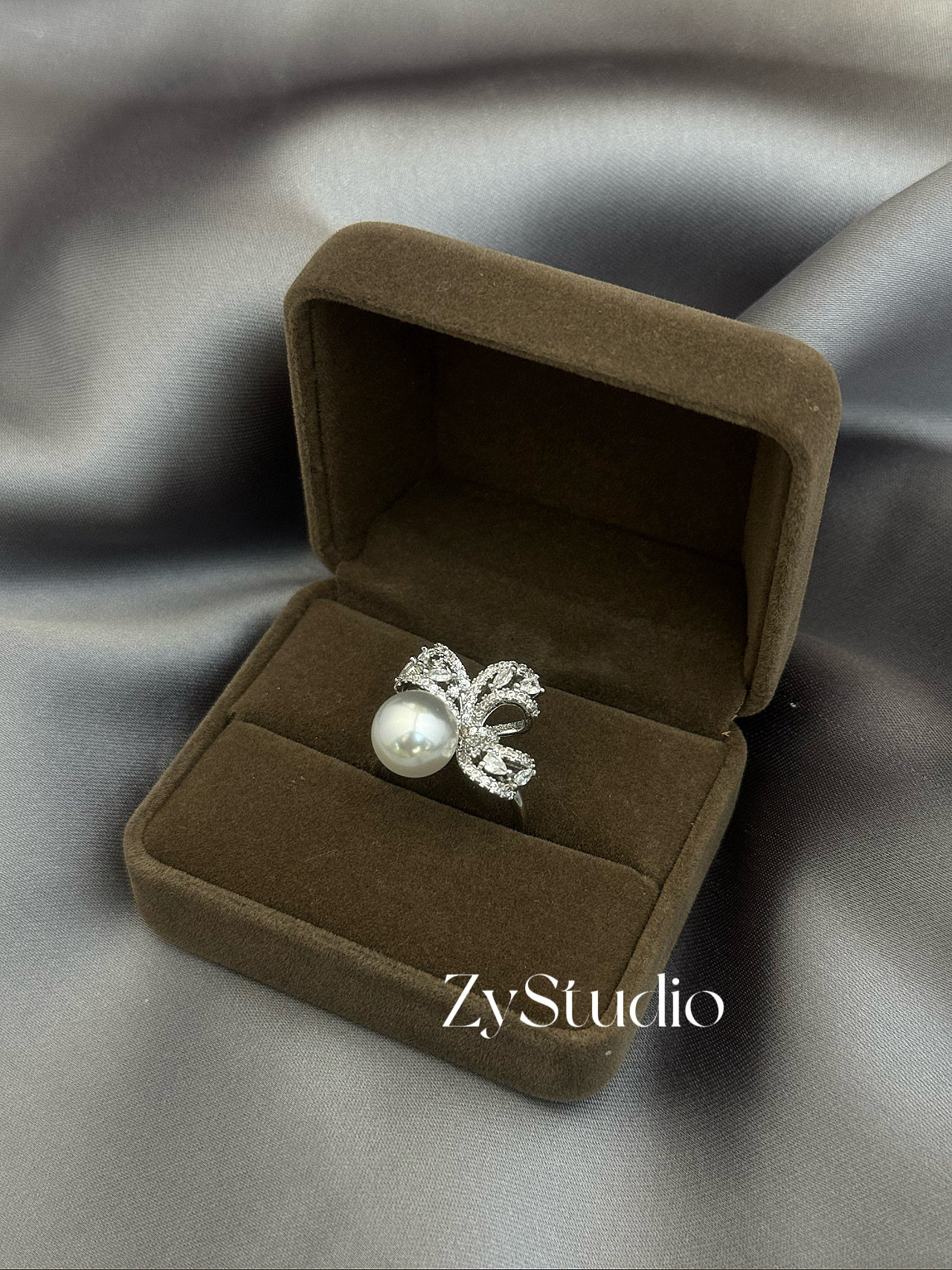 ZyStudio 人造澳白蝴蝶结锆石珍珠戒指2024新款指环