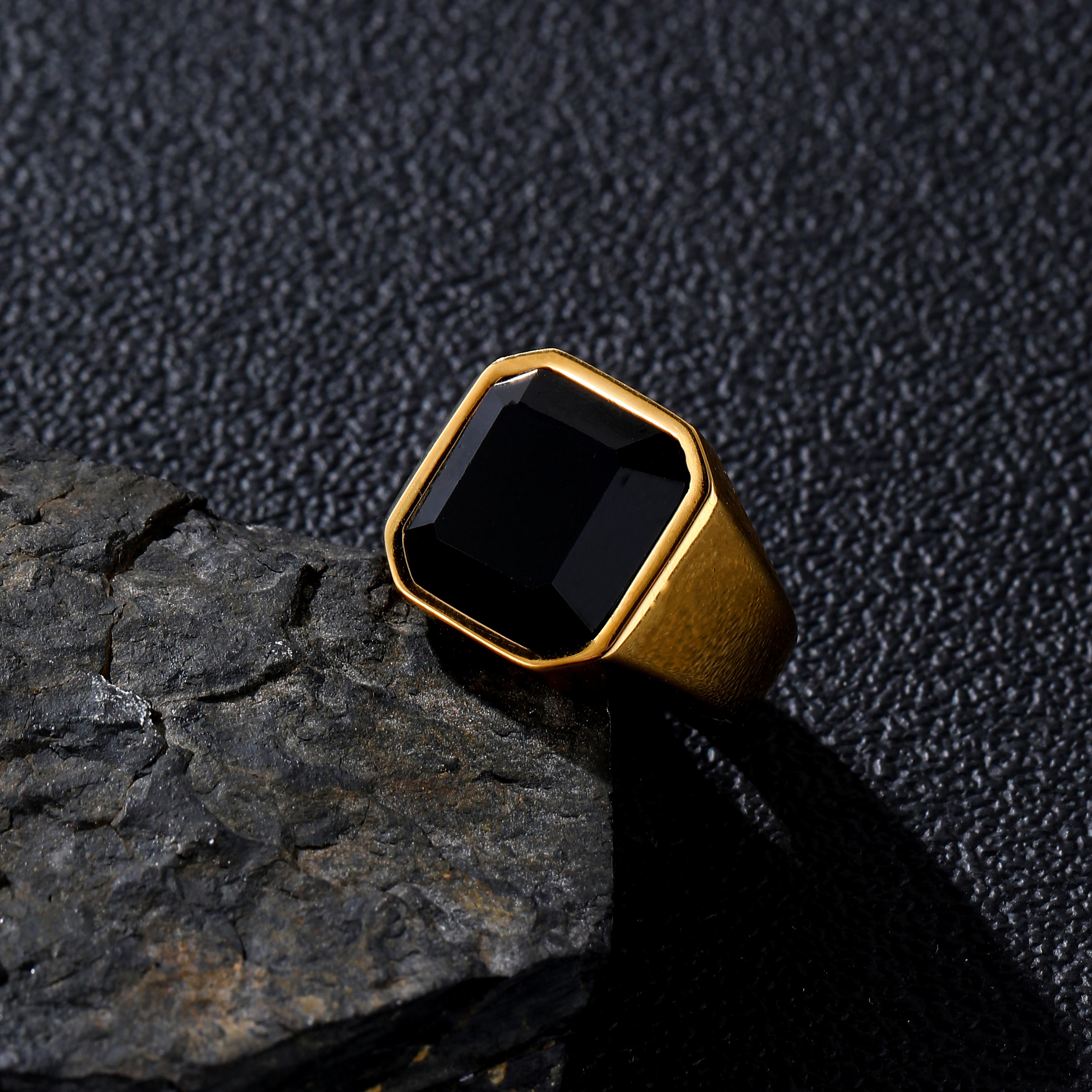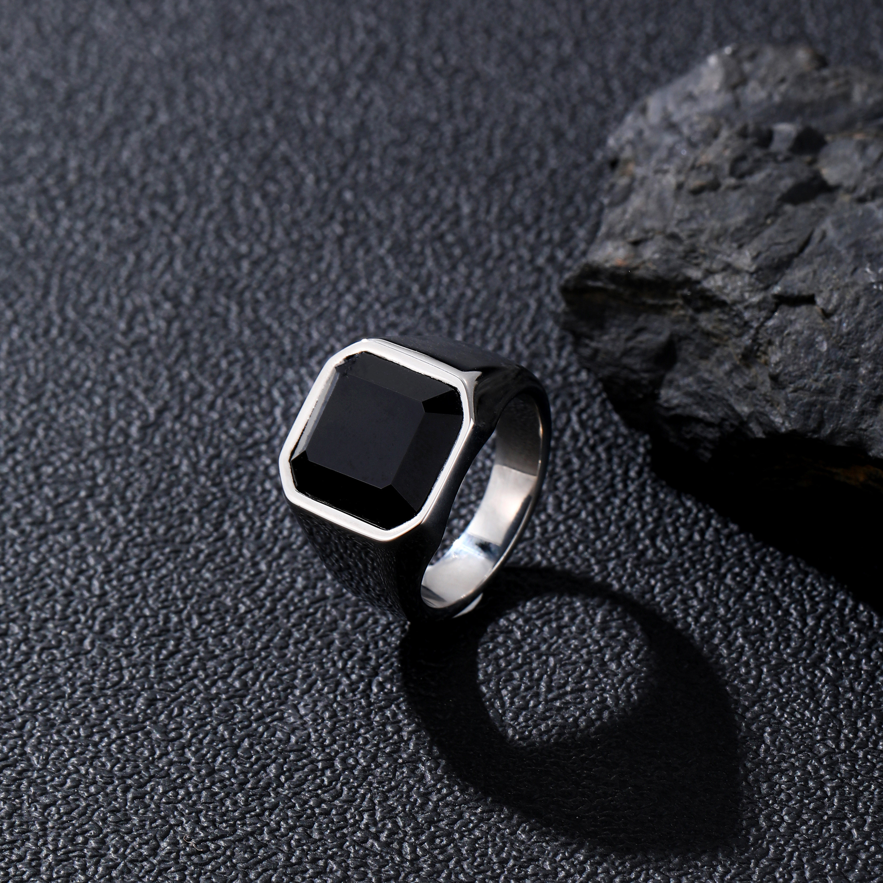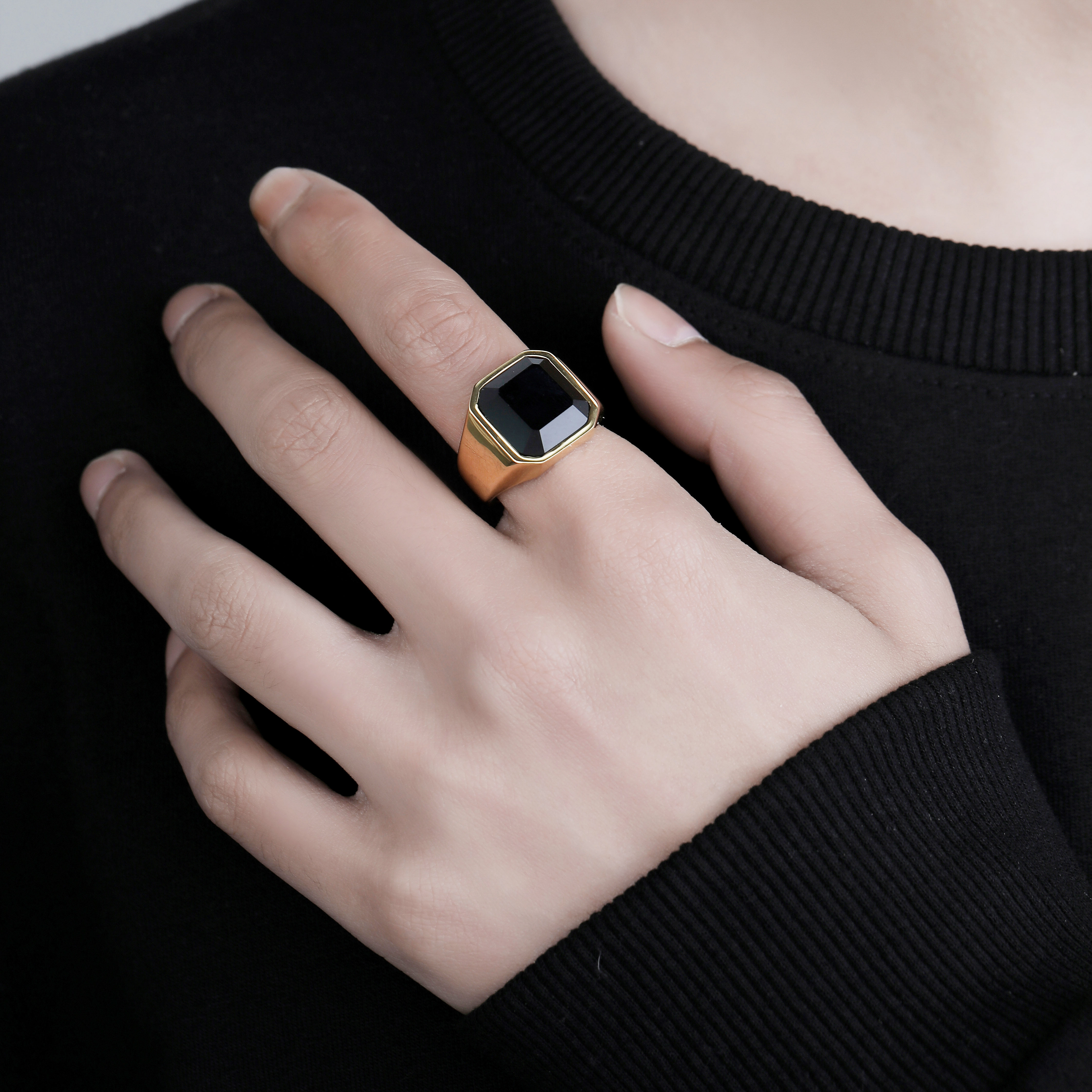 钛钢黑色宝石戒指男潮欧美霸气指环嘻哈街头男士潮流自律大板戒指