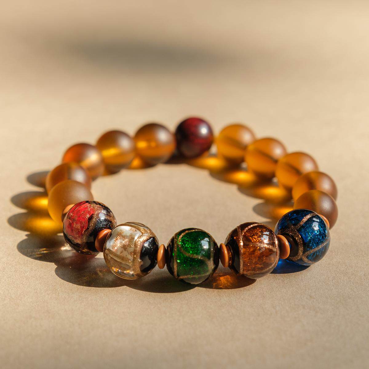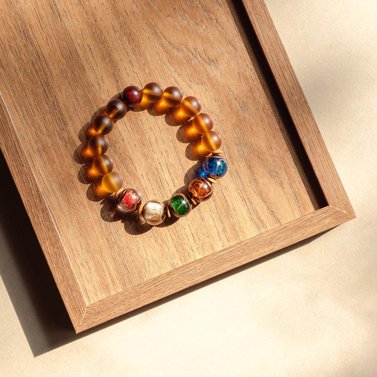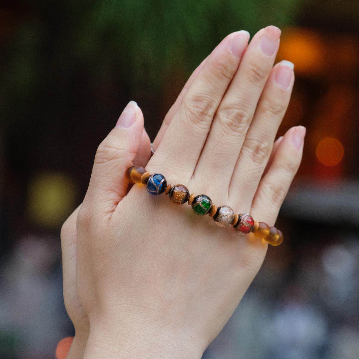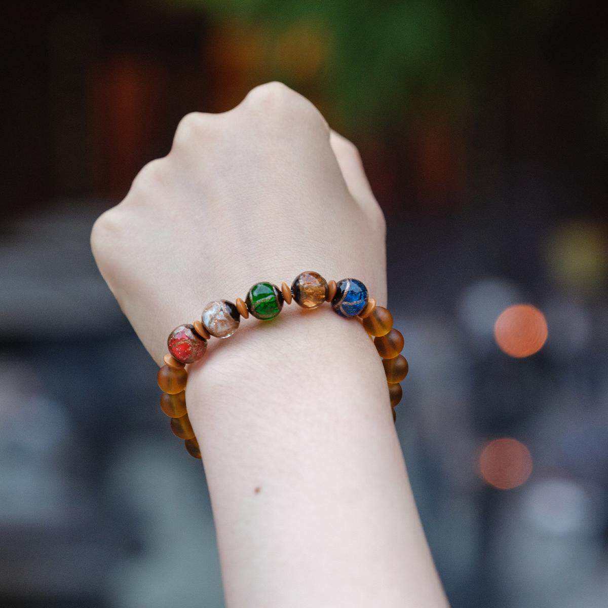 灵隐金田池五福临门香灰琉璃转运珠手链招财事业平安小叶紫檀手串