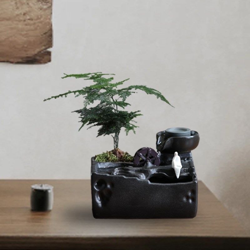 速发茶桌面时来运转循水办件流环水客厅招财摆公室内鱼缸装饰球轮