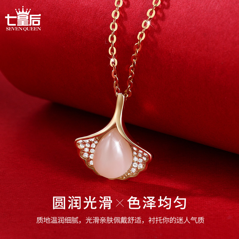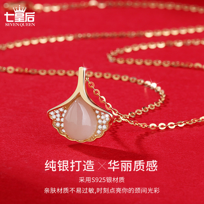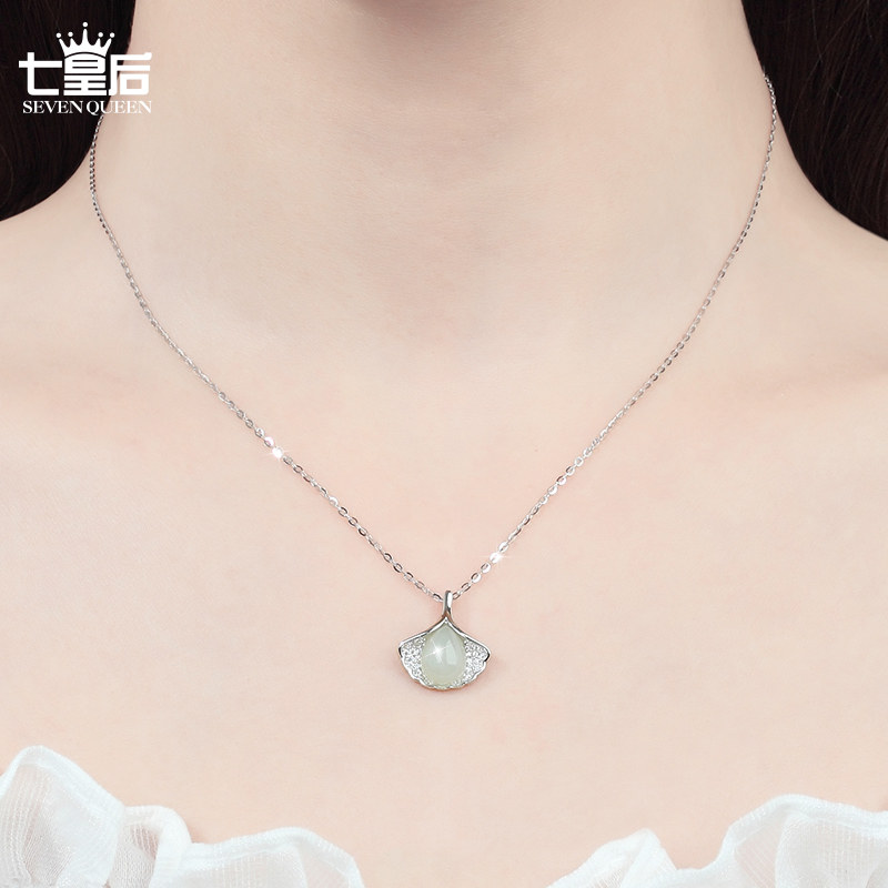 925纯银天然和田玉项链女夏简约银杏叶气质锁骨链时尚礼物送女友