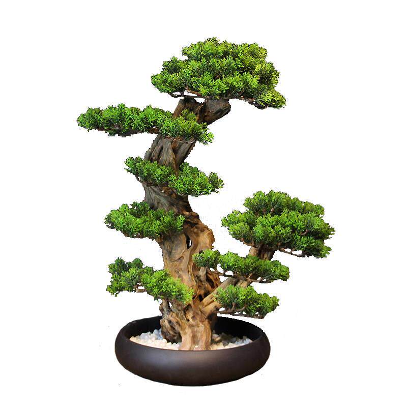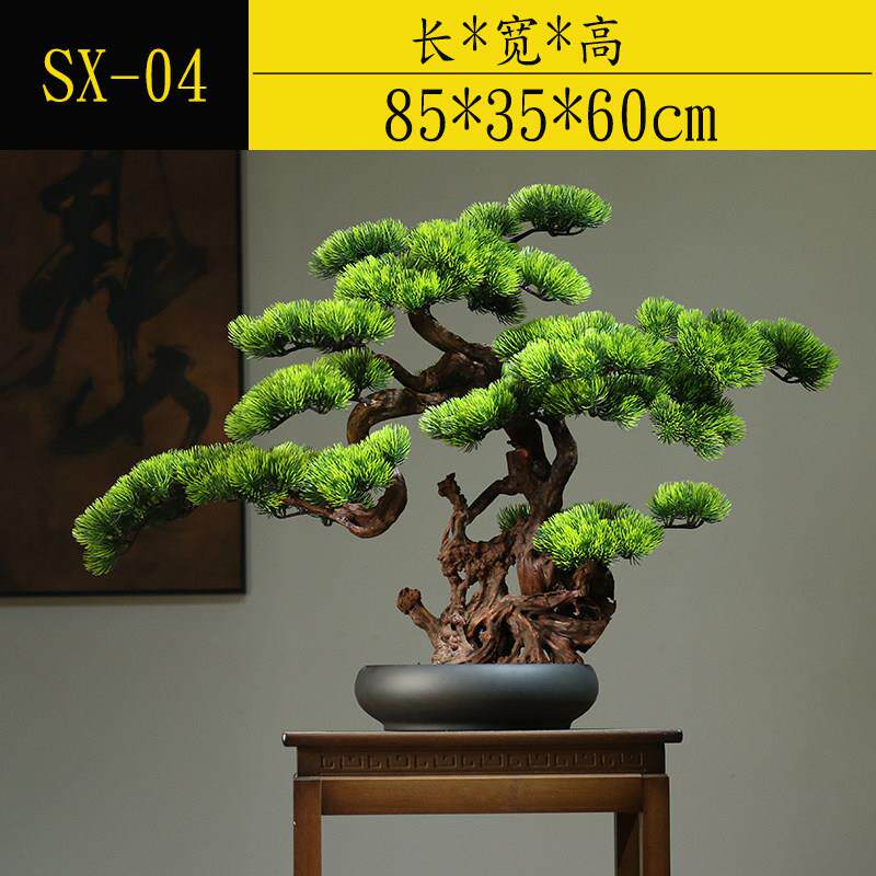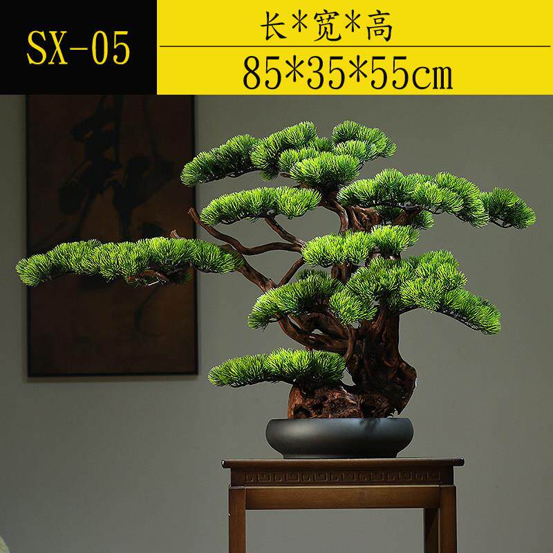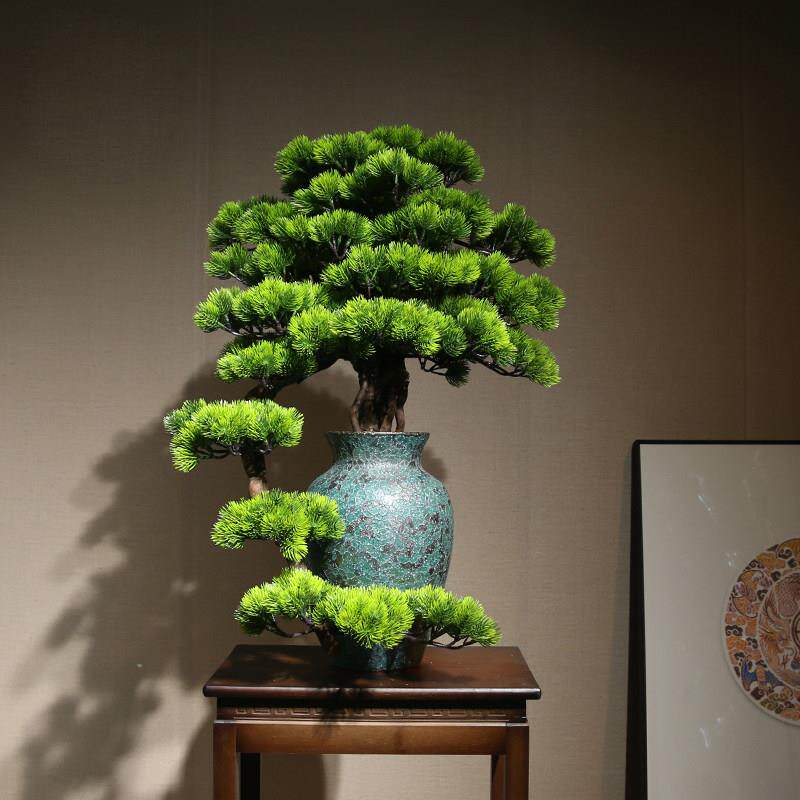 新中式彷真绿色植物迎客松盆景栽客厅电视柜玄关装饰品酒店办公室