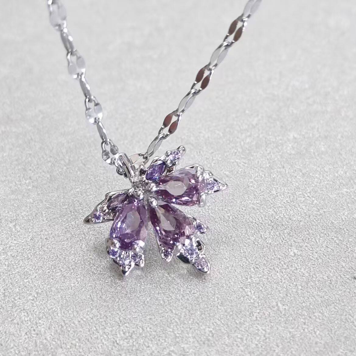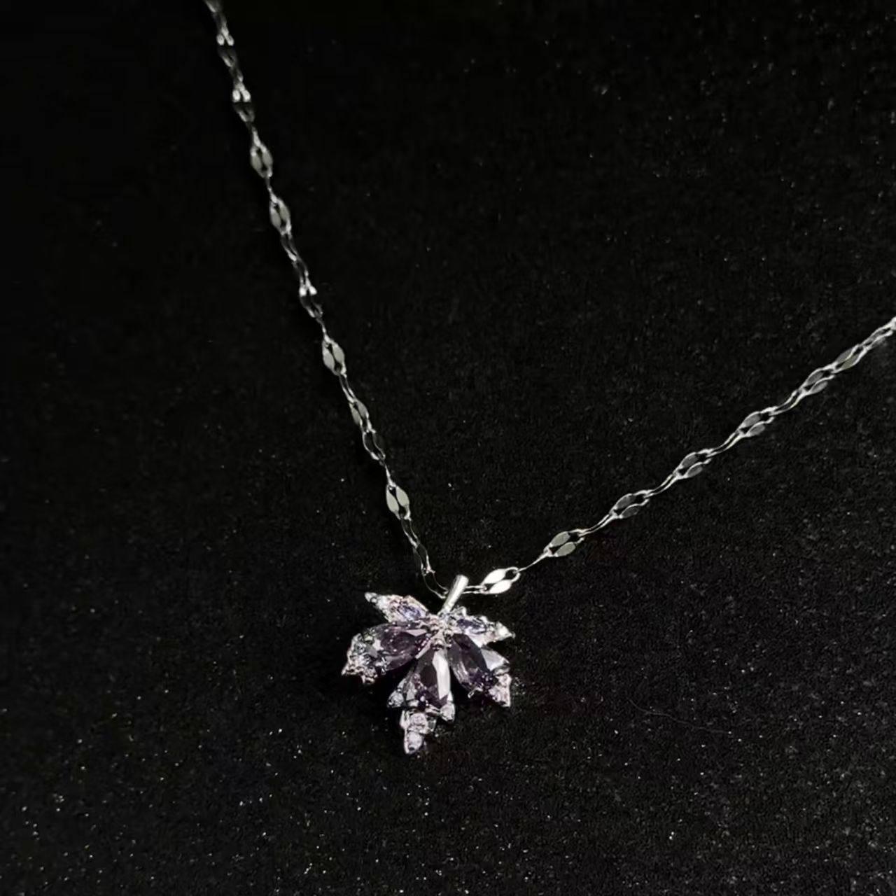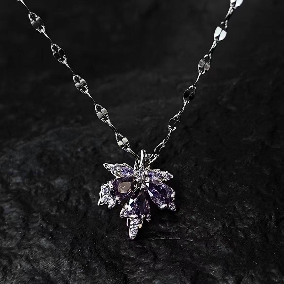 Vintage古着Purple MapleLeaf紫熠枫叶吊坠项链ins小众秋季锁骨链