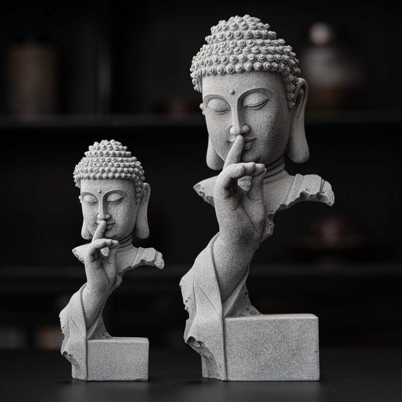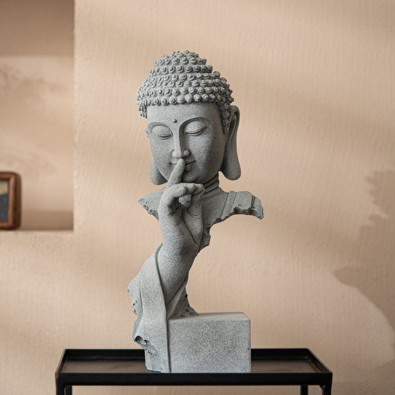 中式释迦牟尼佛像摆件青砂石鱼缸造景园艺桌面茶室装饰品如来茶宠
