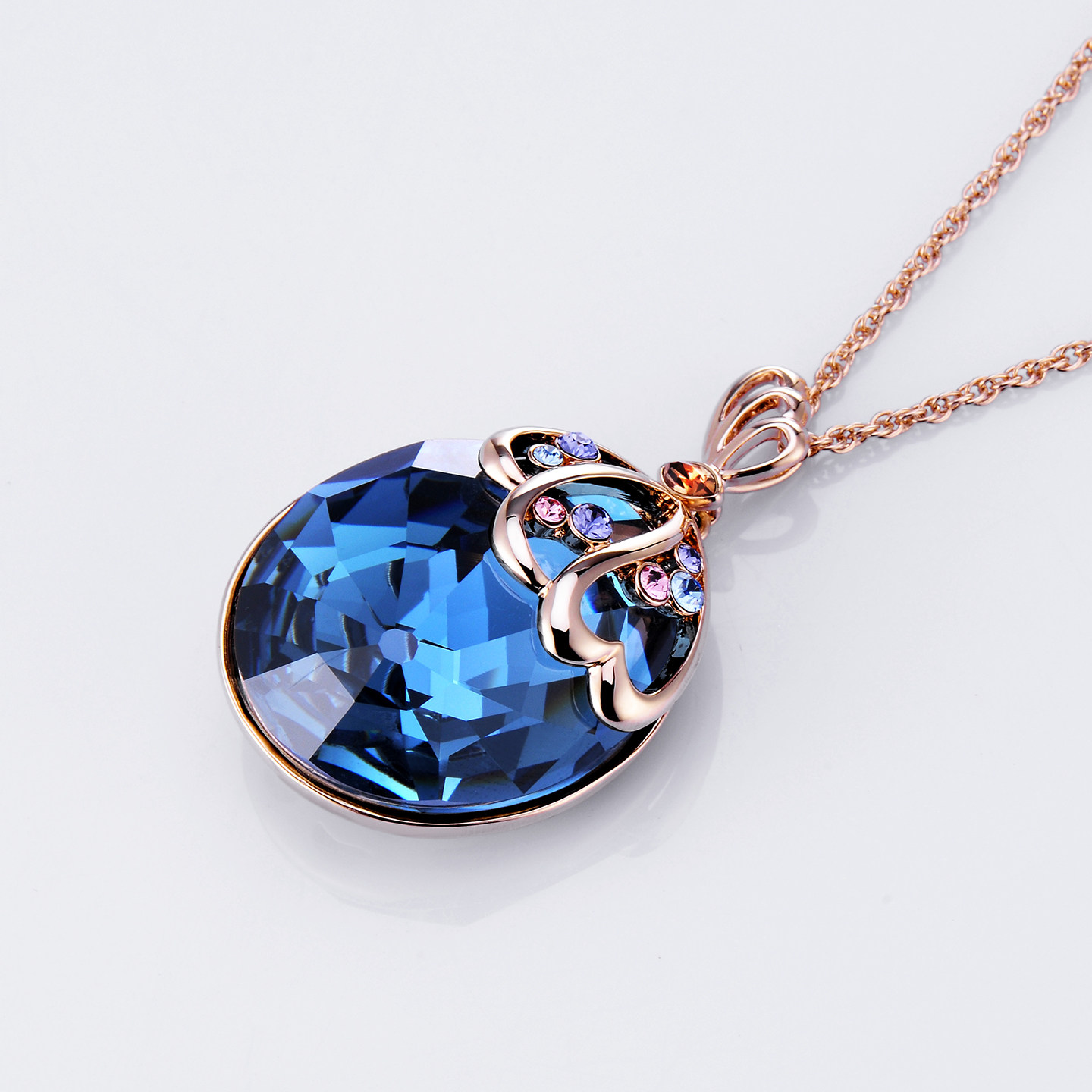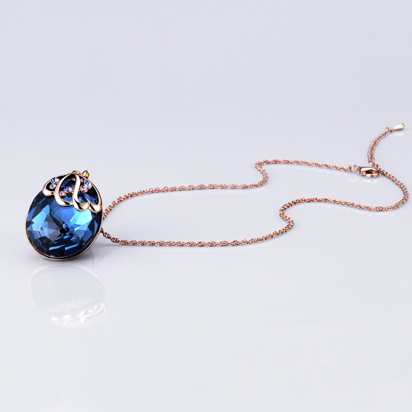 伊泰莲娜复石蓝色吊坠流行饰品时尚项链轻奢高级感短链锁骨链