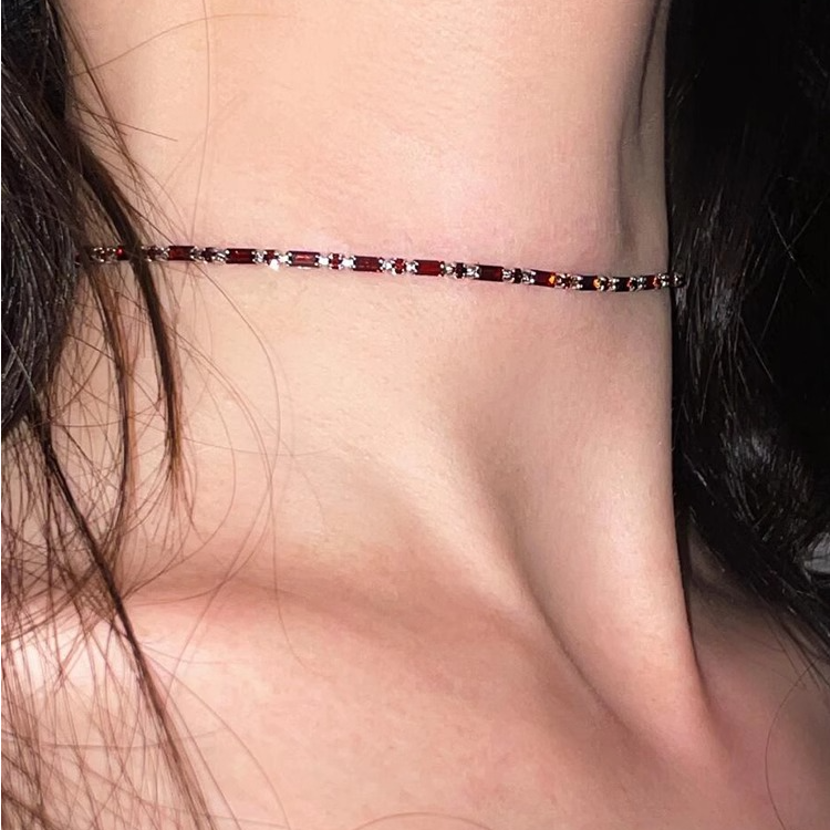 红色仿锆石项链女款2026新款高级感轻奢小众choker锁骨链气质颈链