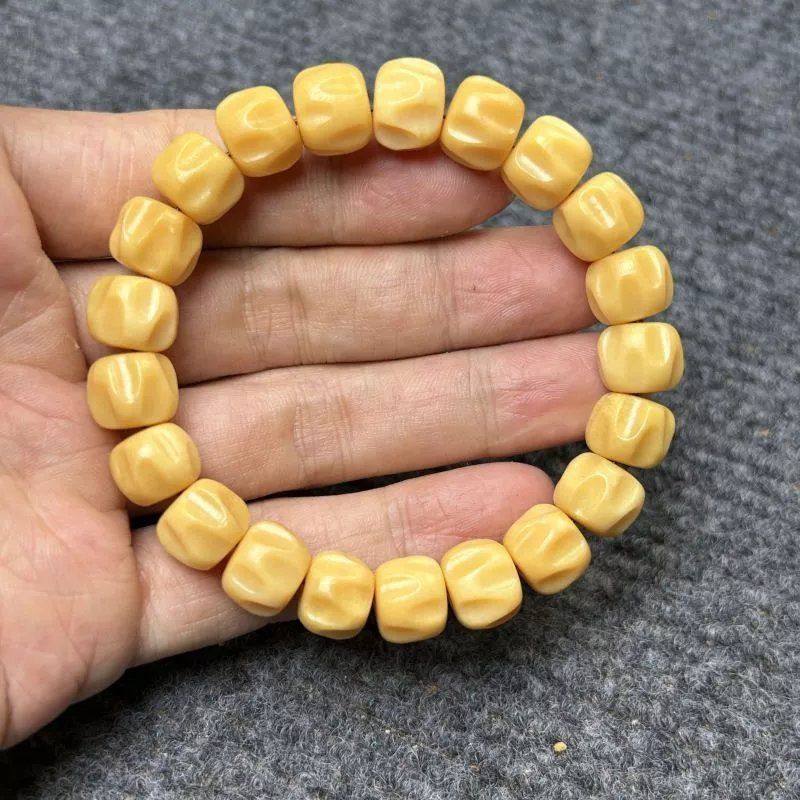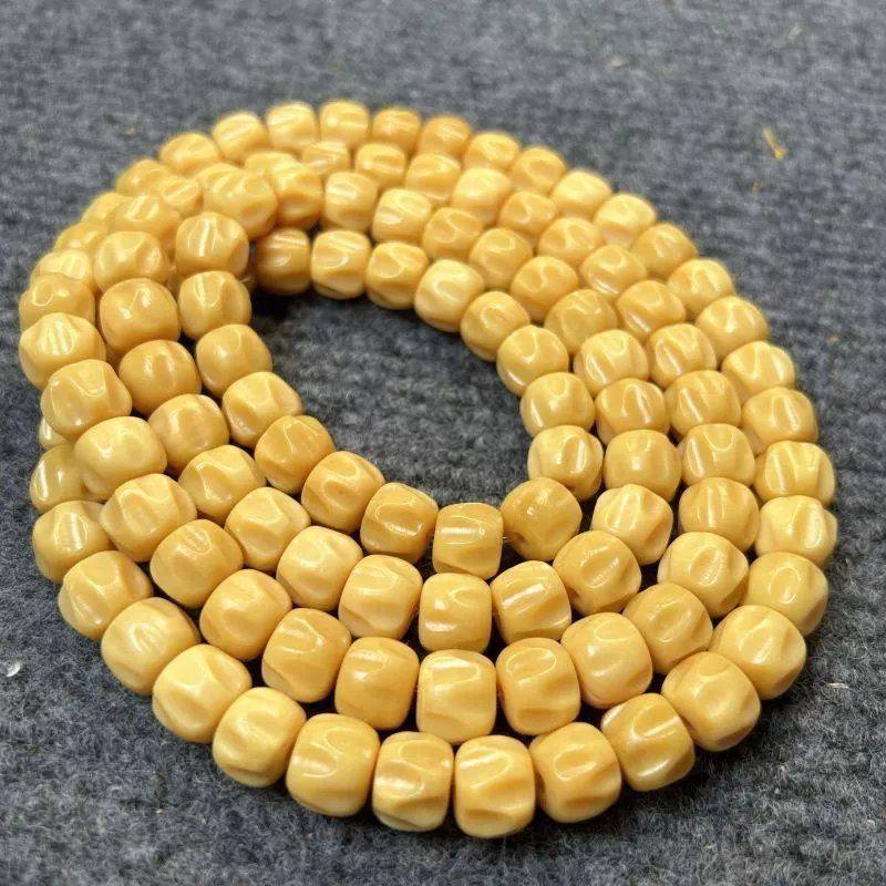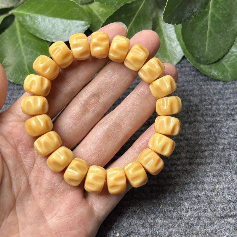 黄色天然鹿骨雕刻百香籽手串高油高密度鹿角108佛珠手链8*10*12mm