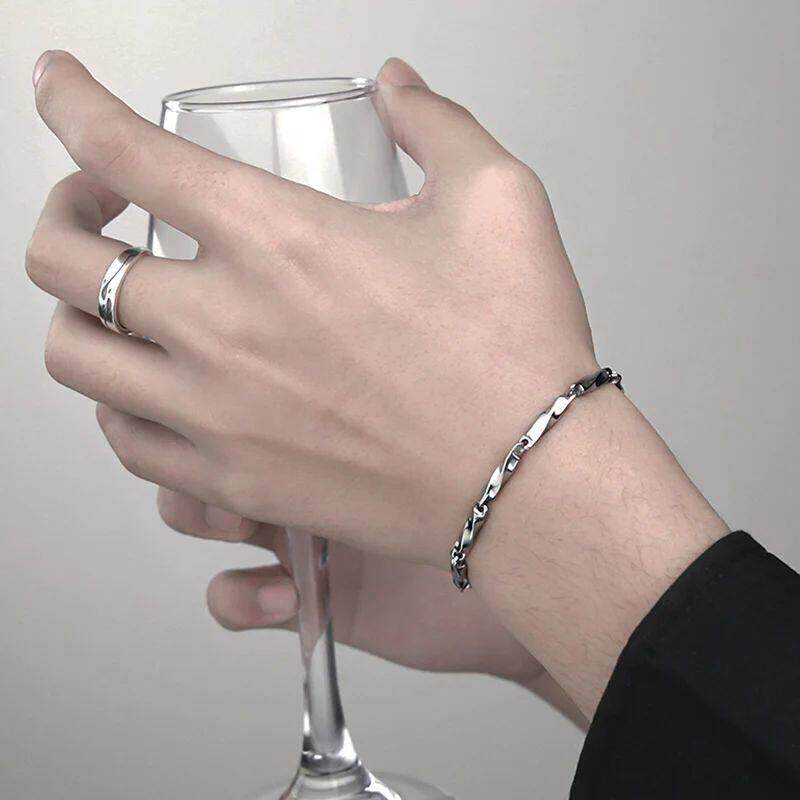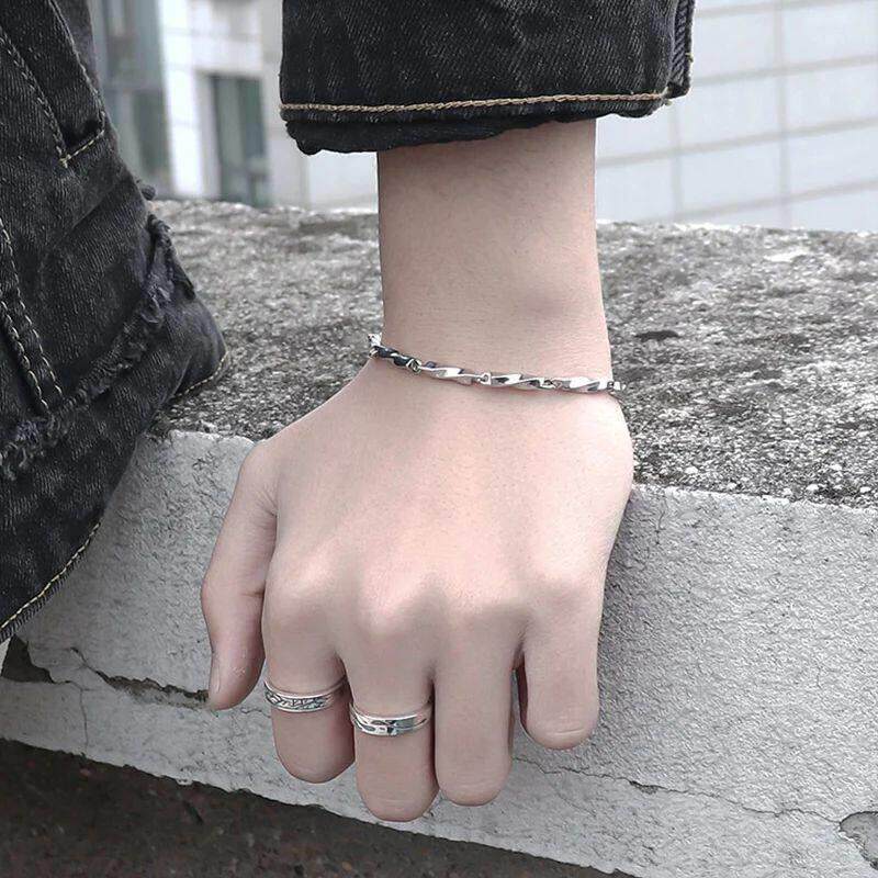 Stainless Steel Men Charm Bracelet Punk Vintage Twisted Wove